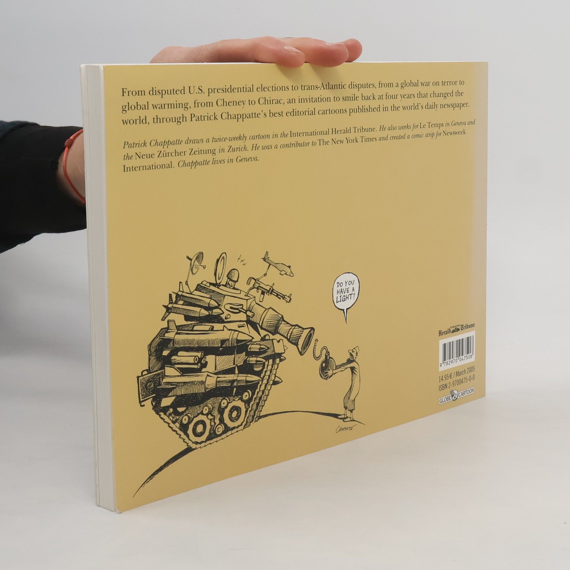 From disputed U.S. presidential elections to trans-Atlantic disputes, from a global war on terror to global warming, from Cheney to Chirac, an invitation to smile back at four years that changed the world, through Patrick Chappatte's best editorial cartoons published in the world's daily newspaper.