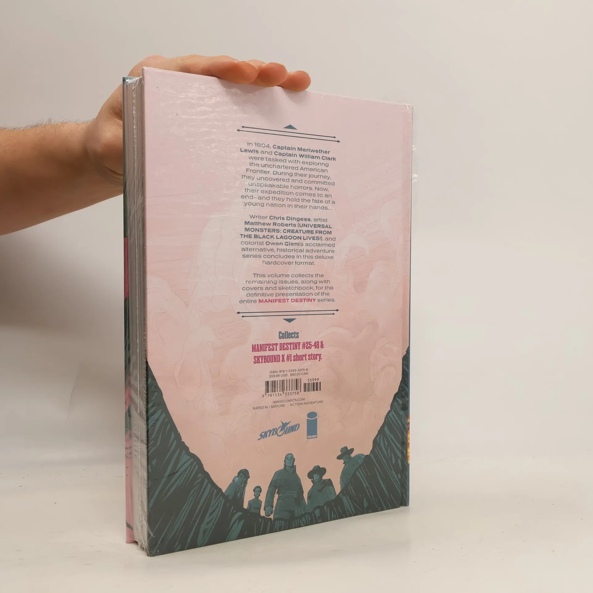 THE GROUNDBREAKING SERIES A DECADE IN THE MAKING!In 1804, Captain Meriweather Lewis and Captain William Clark were tasked with exploring the unchartered American Frontier. During their journey, they uncovered and committed unspeakable horrors. Now, their expedition comes to an end—and they hold the fate of a nation in their hands...CHRIS DINGESS (Marvel’s Agent Carter, Doom Patrol) and MATTHEW ROBERTS’ (UNIVERSAL MONSTERS: CREATURE FROM THE BLACK LAGOON LIVES!) acclaimed alternative historical adventure series concludes in this deluxe hardcover format.Collects MANIFEST DESTINY #25-48 & SKYBOUND X #1 short story