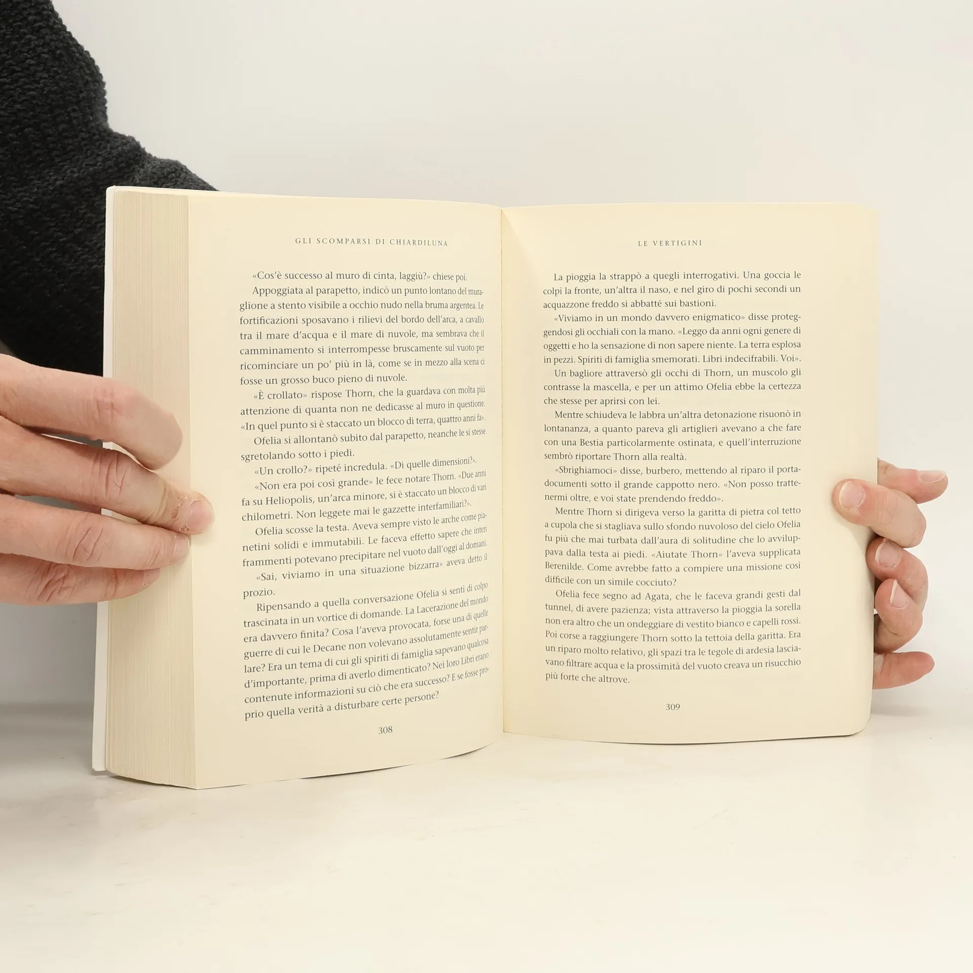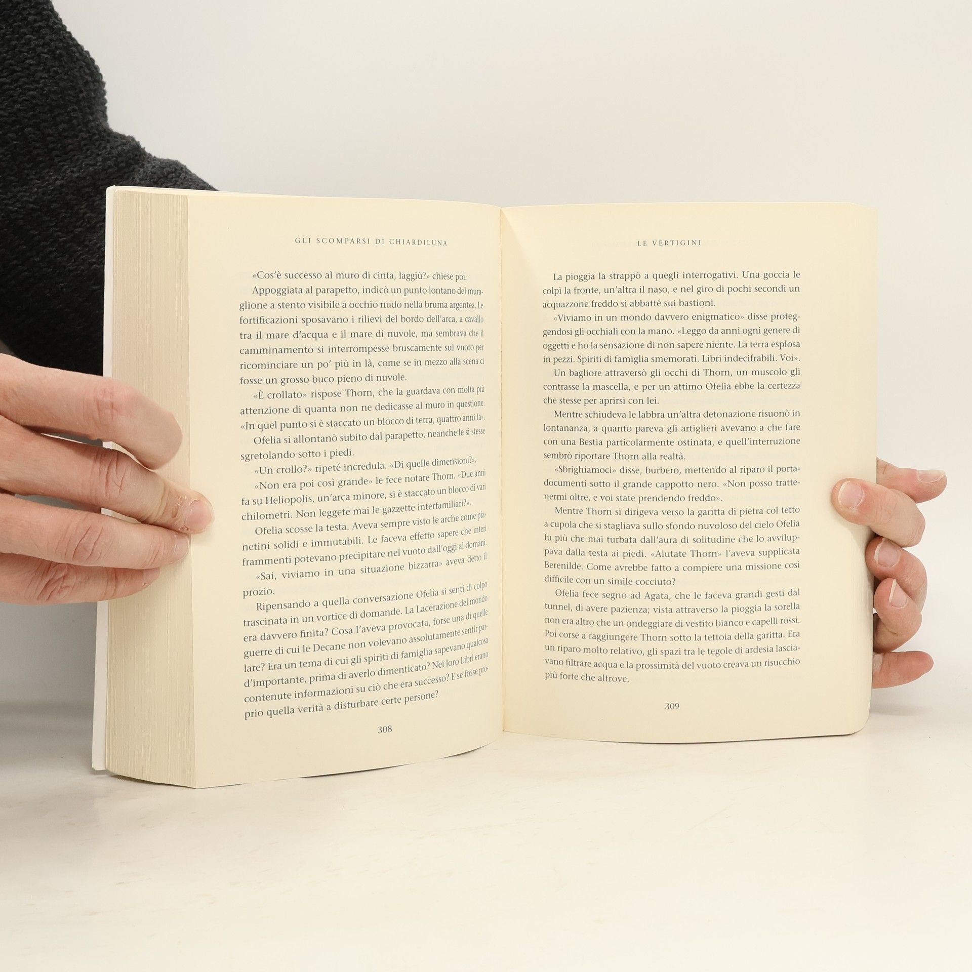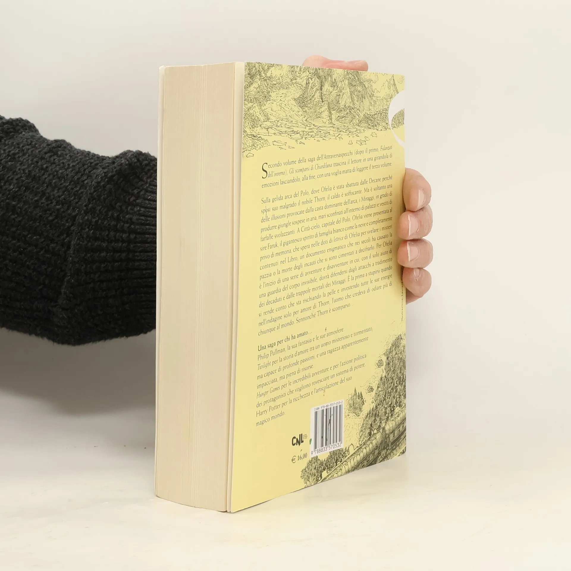 Secondo volume della saga dell’ Attraversaspecchi (dopo il primo, Fidanzati dell’inverno ), Gli scomparsi di Chiardiluna trascina il lettore in una girandola di emozioni lasciandolo, alla fine, con una voglia matta di leggere il terzo volume. Sulla gelida arca del Polo, dove Ofelia è stata sbattuta dalle Decane perché sposi suo malgrado il nobile Thorn, il caldo è soffocante. Ma è soltanto una delle illusioni provocate dalla casta dominante dell’arca, i Miraggi, in grado di produrre giungle sospese in aria, mari sconfinati all’interno di palazzi e vestiti di farfalle svolazzanti. A Città-cielo, capitale del Polo, Ofelia viene presentata al sire Faruk, il gigantesco spirito di famiglia bianco come la neve e completamente privo di memoria, che spera nelle doti di lettrice di Ofelia per svelare i misteri contenuti nel Libro, un documento enigmatico che nei secoli ha causato la pazzia o la morte degli incauti che si sono cimentati a decifrarlo. Per Ofelia è l’inizio di una serie di avventure e disavventure in cui, con il solo aiuto di una guardia del corpo invisibile, dovrà difendersi dagli attacchi a tradimento dei decaduti e dalle trappole mortali dei Miraggi. È la prima a stupirsi quando si rende conto che sta rischiando la pelle e investendo tutte le sue energie nell’indagine solo per amore di Thorn, l’uomo che credeva di odiare più di chiunque al mondo. Sennonché Thorn è scomparso...