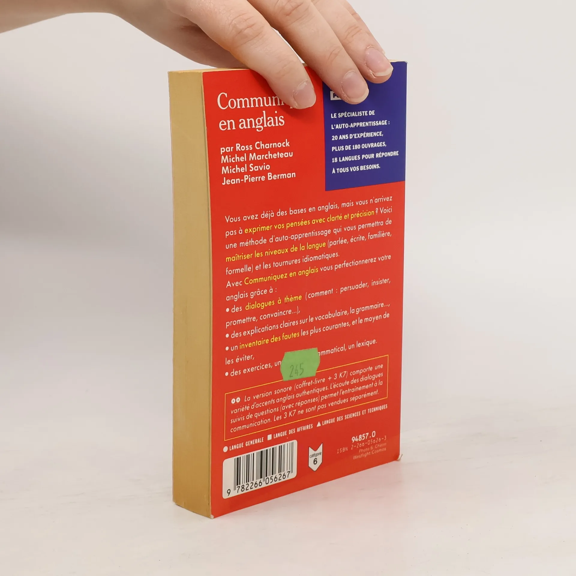 Vous avez déjà des bases en anglais, mais vous n'arrivez pas à exprimer vos pensées avec clarté et précision ? Voici une méthode d'auto-apprentissage qui vous permettra de maîtriser les niveaux de la langue (parlée, écrite, familière, formelle) et les tournures idiomatiques. Avec Communiquez en anglais, vous perfectionnerez votre anglais grace à : - des dialogues à thème (comment : persuader, insiter, promettre, convaincre...), - des explications claires sur le vocabulaire, la grammaire..., - un inventaire des fautes les plus courantes, et le moyen de les éviter, - des exercices, un mémento grammatical, un lexique.