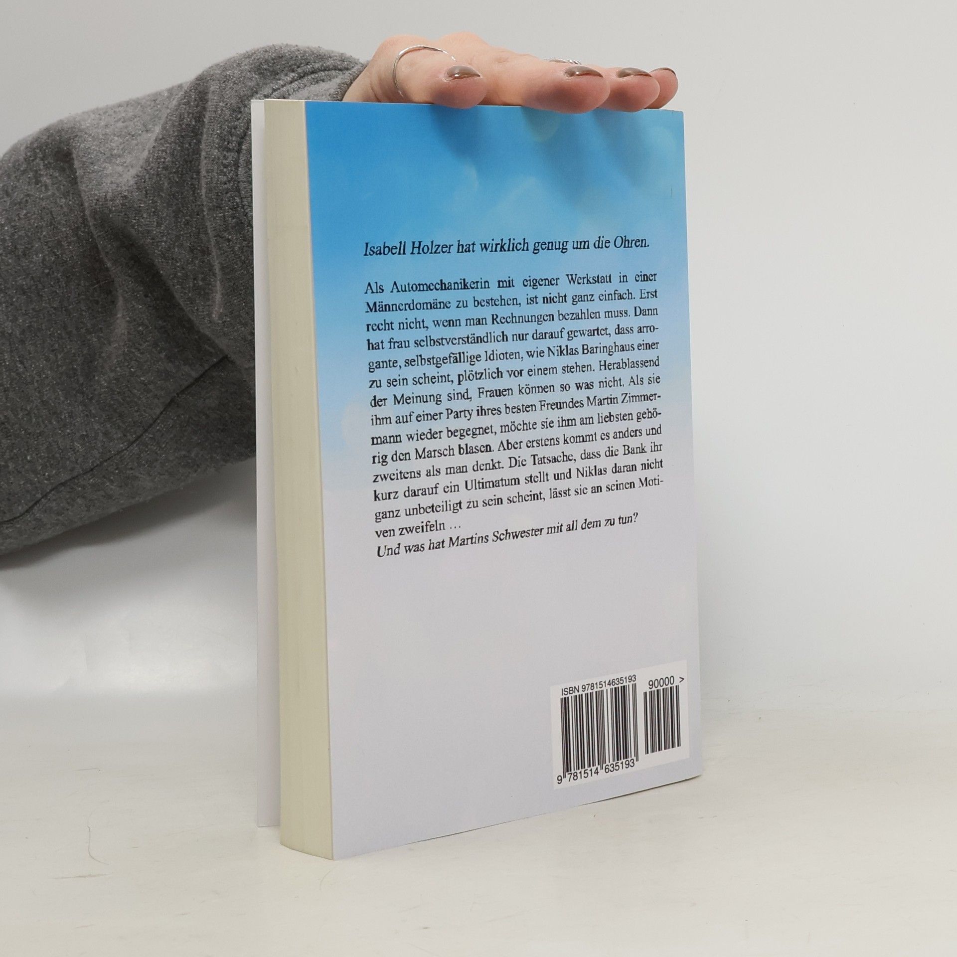 Isabell Holzer hat wirklich genug um die Ohren. Als Automechanikerin mit eigener Werkstatt in einer Männerdomäne zu bestehen, ist nicht ganz einfach. Erst recht nicht, wenn man Rechnungen bezahlen muss.Dann hat frau selbstverständlich nur darauf gewartet, dass arrogante, selbstgefällige Idioten, wie Niklas Baringhaus einer zu sein scheint, plötzlich vor einem stehen. Herablassend der Meinung sind, Frauen können so was nicht.Als sie ihm auf einer Party ihres besten Freundes Martin Zimmermann wieder begegnet, möchte sie ihm am liebsten gehörig den Marsch blasen.Aber erstens kommt es anders und zweitens als man denkt.Die Tatsache, dass die Bank ihr kurz darauf ein Ultimatum stellt und Niklas daran nicht ganz unbeteiligt zu sein scheint, lässt sie an seinen Motiven zweifeln … Und was hat Martins Schwester mit all dem zu tun?