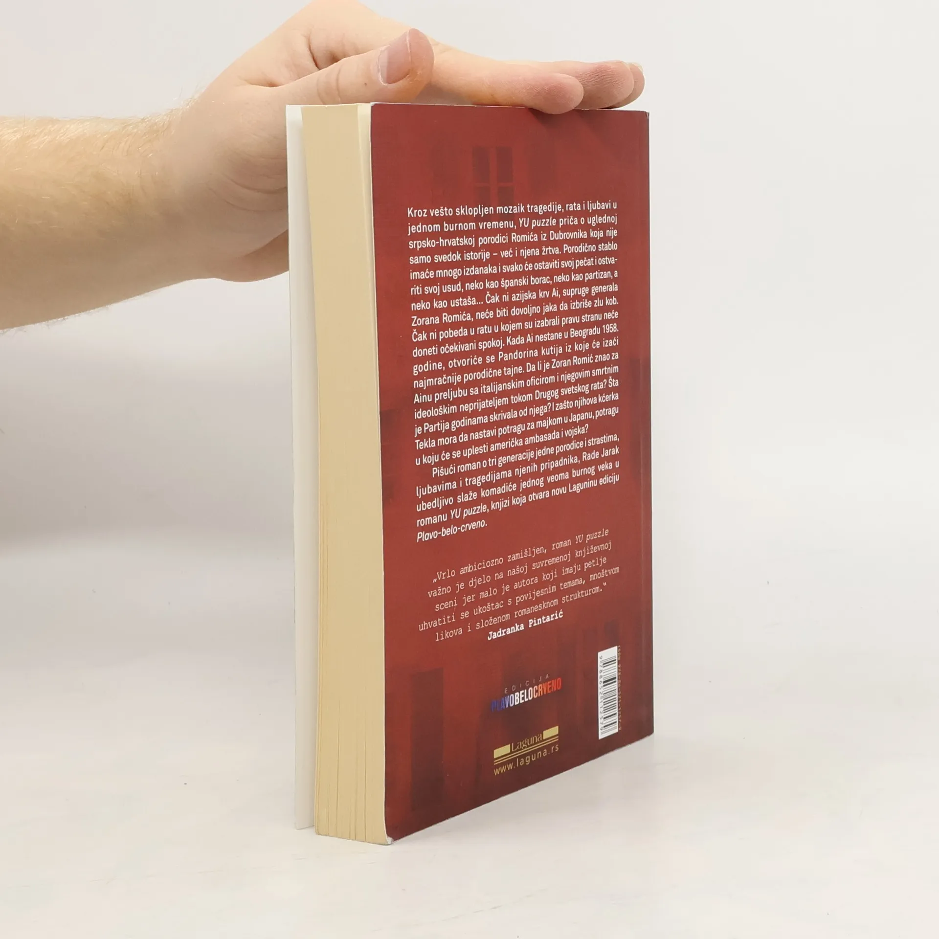 Kroz vešto sklopljen mozaik tragedije, rata i ljubavi u jednom burnom vremenu, YU puzzle priča priču o uglednoj srpsko-hrvatskoj porodici Romića iz Dubrovnika koja nije samo svedok istorije – već i njena žrtva. Porodično stablo imaće mnogo izdanaka i svako će ostaviti svoj pečat i ostvariti svoj usud, neko kao španski borac, neko kao partizan, a neko kao ustaša... Čak ni azijska krv Ai, supruge generala Zorana Romića, neće biti dovoljno jaka da izbriše zlu kob. Čak ni pobeda u ratu u kome su izabrali pravu stranu neće doneti očekivani spokoj. Kada Ai nestane u Beogradu 1958. godine, otvoriće se Pandorina kutija iz koje će izaći najmračnije porodične tajne. Da li je Zoran Romić znao za Ainu preljubu sa italijanskim oficirom i njegovim smrtnim ideološkim neprijateljem tokom Drugog svetskog rata? Šta je Partija godinama skrivala od njega? I zašto njihova kćerka Tekla mora da nastavi potragu za majkom u Japanu, potragu u koju će se uplesti američka ambasada i vojska? Pišući roman o tri generacije jedne porodice i strastima, ljubavima i tragedijama njenih pripadnika, Rade Jarak ubedljivo slaže komadiće jednog veoma burnog veka u romanu YU puzzle, knjizi koja otvara novu Laguninu ediciju Plavo-belo-crveno. „Vrlo ambiciozno zamišljen, roman YU puzzle važno je djelo na našoj suvremenoj književnoj sceni jer malo je autora koji imaju petlje uhvatiti se u koštac s povijesnim temama, mnoštvom likova i složenom romanesknom strukturom.“ Jadranka Pintarić Nacional, Zagreb