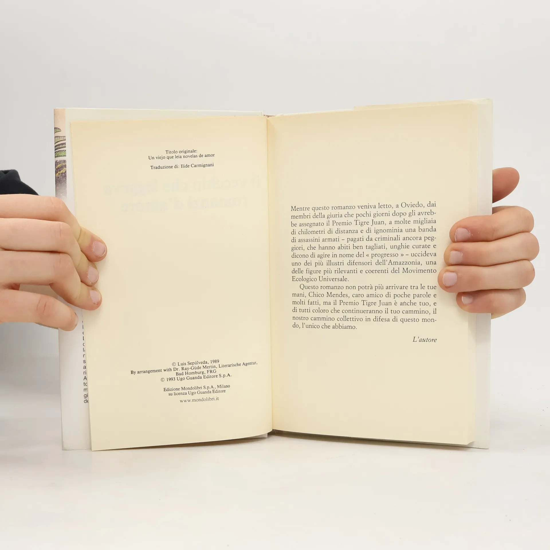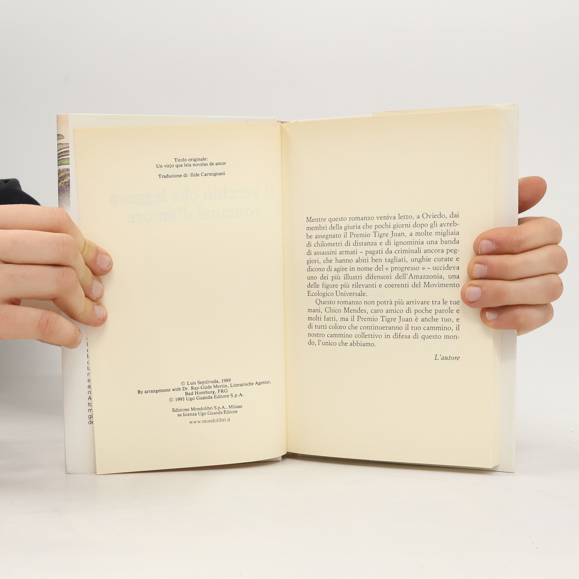 Il vecchio che leggeva romanzi d'amore, Luis Sepúlveda