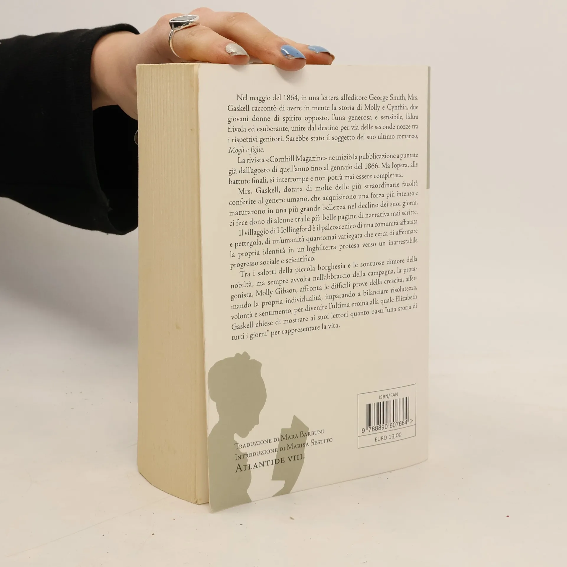 Nel maggio del 1864, in una lettera all’editore George Smith, Mrs. Gaskell raccontò di avere in mente la storia di Molly e Cynthia, due giovani donne di spirito opposto, l’una generosa e sensibile, l’altra frivola ed esuberante, unite dal destino per via delle seconde nozze tra i rispettivi genitori. Sarebbe stato il soggetto del suo ultimo romanzo, Mogli e figlie. La rivista «Cornhill Magazine» ne iniziò la pubblicazione a puntate già dall’agosto di quell’anno fino al gennaio del 1866. Ma l’opera, alle battute finali, si interrompe e non potrà mai essere completata. Mrs. Gaskell, dotata di molte delle più straordinarie facoltà conferite al genere umano, che acquisirono una forza più intensa e maturarono in una più grande bellezza nel declino dei suoi giorni, ci fece dono di alcune tra le più belle pagine di narrativa mai scritte. Il villaggio di Hollingford è il palcoscenico di una comunità affiatata e pettegola, di un’umanità quantomai variegata che cerca di affermare la propria identità in un’Inghilterra protesa verso un inarrestabile progresso sociale e scientifico. Tra i salotti della piccola borghesia e le sontuose dimore della nobiltà, ma sempre avvolta nell’abbraccio della campagna, la protagonista, Molly Gibson, affronta le difficili prove della crescita, affermando la propria individualità, imparando a bilanciare risolutezza, volontà e sentimento, per divenire l’ultima eroina alla quale Elizabeth Gaskell chiese di mostrare ai suoi lettori quanto basti “una storia di tutti i giorni” per rappresentare la vita.