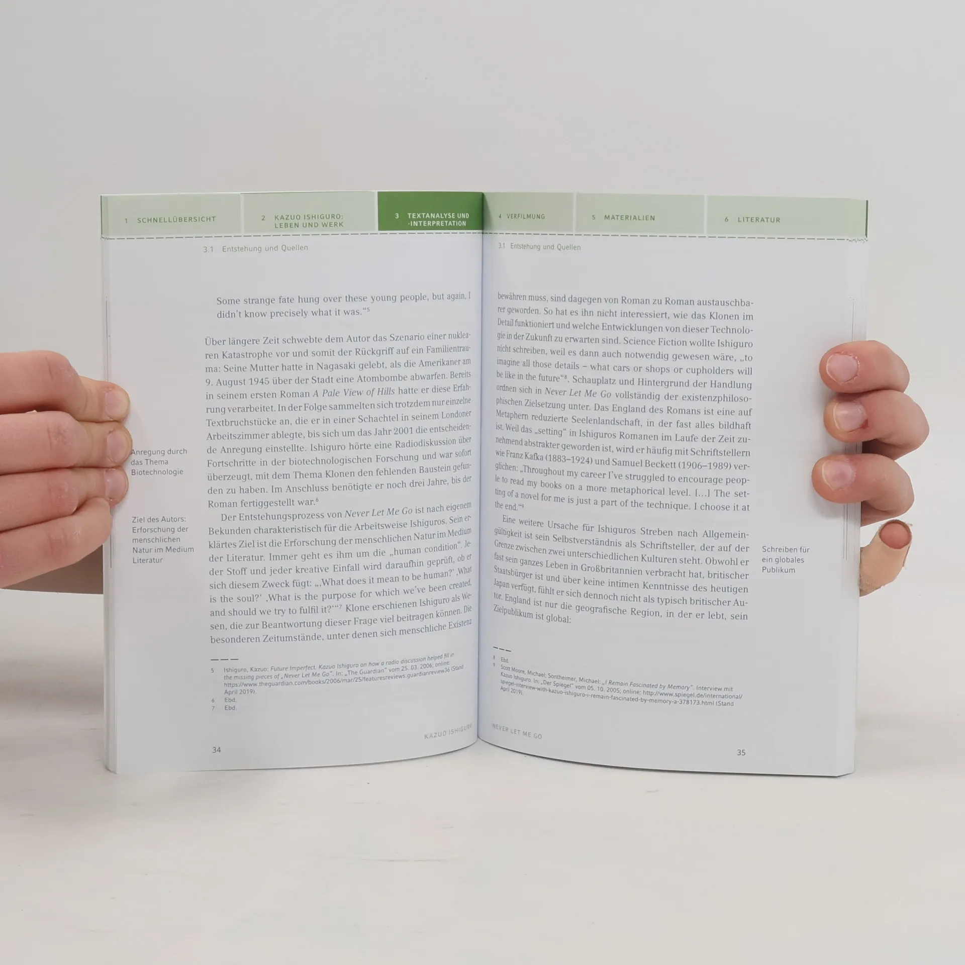 Königs Erläuterung zu Kazuo Ishiguro: Never Let Me Go - Textanalyse und Interpretation mit ausführlicher Inhaltsangabe und Abituraufgaben. In einem Band bieten dir die neuen Königs Erläuterungen alles, was du zur Vorbereitung auf Referat, Klausur, Abitur oder Matura benötigst. Das spart dir lästiges Recherchieren und kostet weniger Zeit zur Vorbereitung. Alle wichtigen Infos zur Interpretation... - von der ausführlichen Inhaltsangabe über Aufbau, Personenkonstellation, Stil und Sprache bis zu Interpretationsansätzen - plus 4 Abituraufgaben mit Musterlösungen und 2 weitere zum kostenlosen Download ... sowohl kurz als auch ausführlich ... - Die Schnellübersicht fasst alle wesentlichen Infos zu Werk und Autor und Analyse zusammen. - Die Kapitelzusammenfassungen zeigen dir das Wichtigste eines Kapitels im Überblick - ideal auch zum Wiederholen. ... und klar strukturiert ... - Ein zweifarbiges Layout hilft dir Wesentliches einfacher und schneller zu erfassen. - Die Randspalte mit Schlüsselbegriffen ermöglichen dir eine bessere Orientierung. - Klar strukturierte Schaubilder verdeutlichen dir wichtige Sachverhalte auf einen Blick. ... mit vielen zusätzlichen Infos zum kostenlosen Download. Sprachen: Englisch, Deutsch