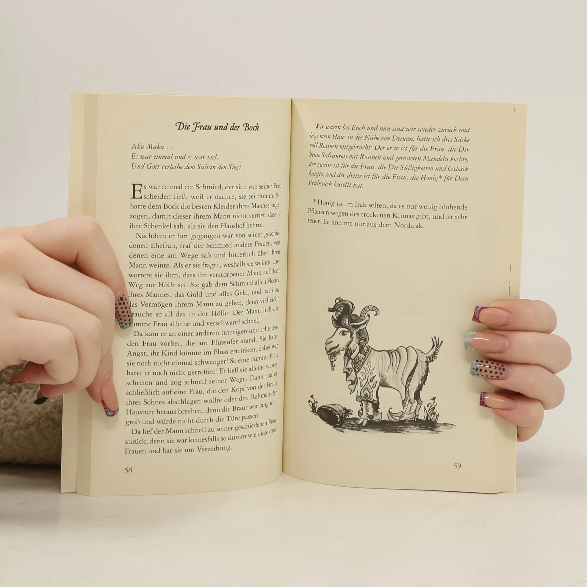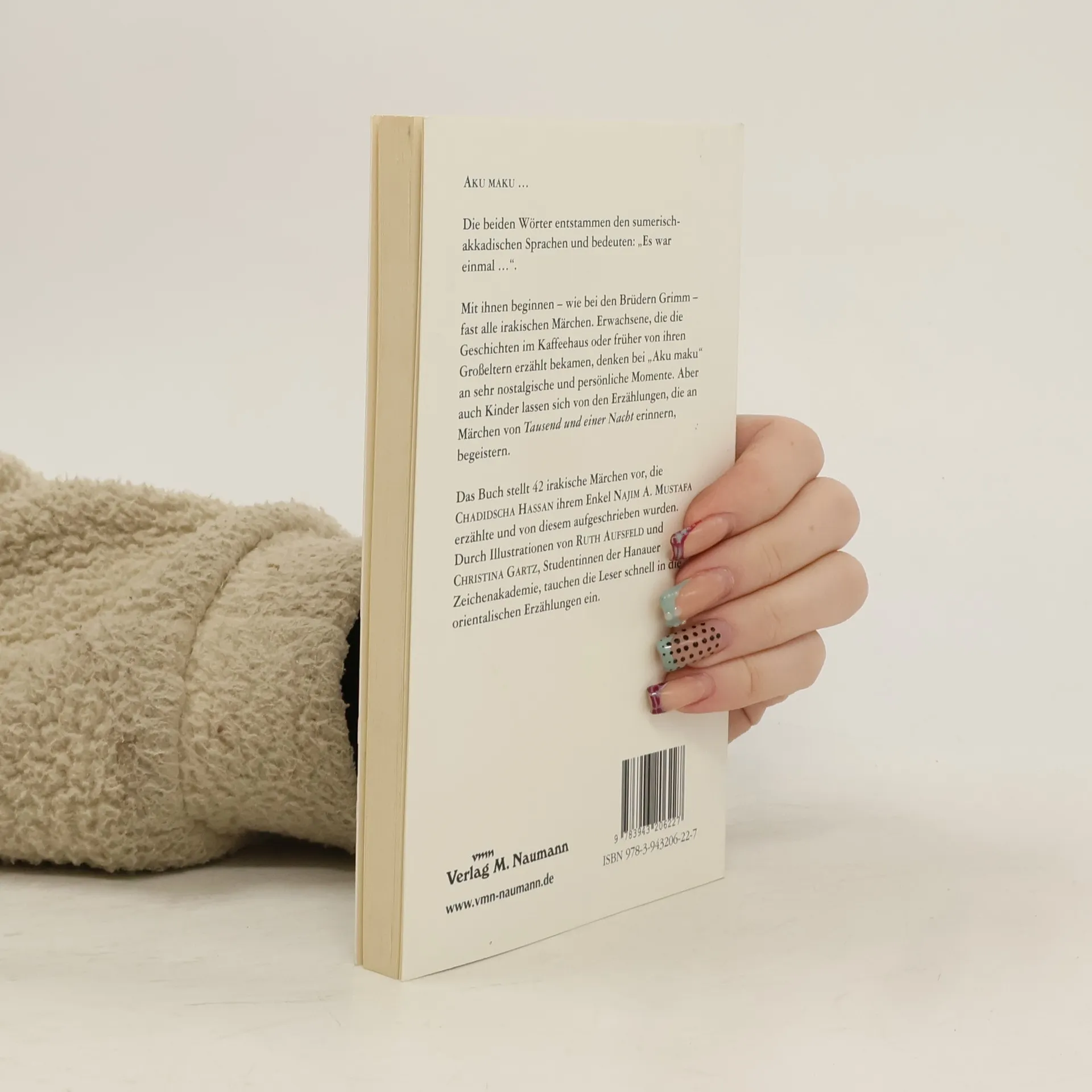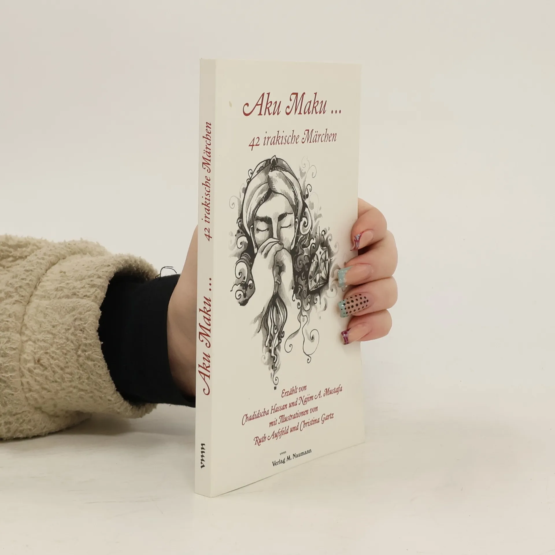 Aku maku … Die beiden Wörter entstammen den sumerisch-akkadischen Sprachen und bedeuten: „Es war einmal …“. Mit ihnen beginnen – wie bei den Brüdern Grimm – fast alle irakischen Märchen. Erwachsene, die die Geschichten im Kaffeehaus der früher von ihren Großeltern erzählt bekamen, denken bei „Aku maku“ an sehr nostalgische und persönliche Momente. Aber auch Kinder lassen sich von den Erzählungen, die an Märchen von Tausend und einer Nacht erinnern, begeistern. Das Buch stellt 42 irakische Märchen vor, die Chadidscha Hassan ihrem Enkel Najim A. Mustafa erzählte und von diesem aufgeschrieben wurden. Durch Illustrationen von Ruth Aufsfeld und Christina Gartz, Studentinnen der Hanauer Zeichenakademie, tauchen die Leser schnell in die orientalischen Erzählungen ein.