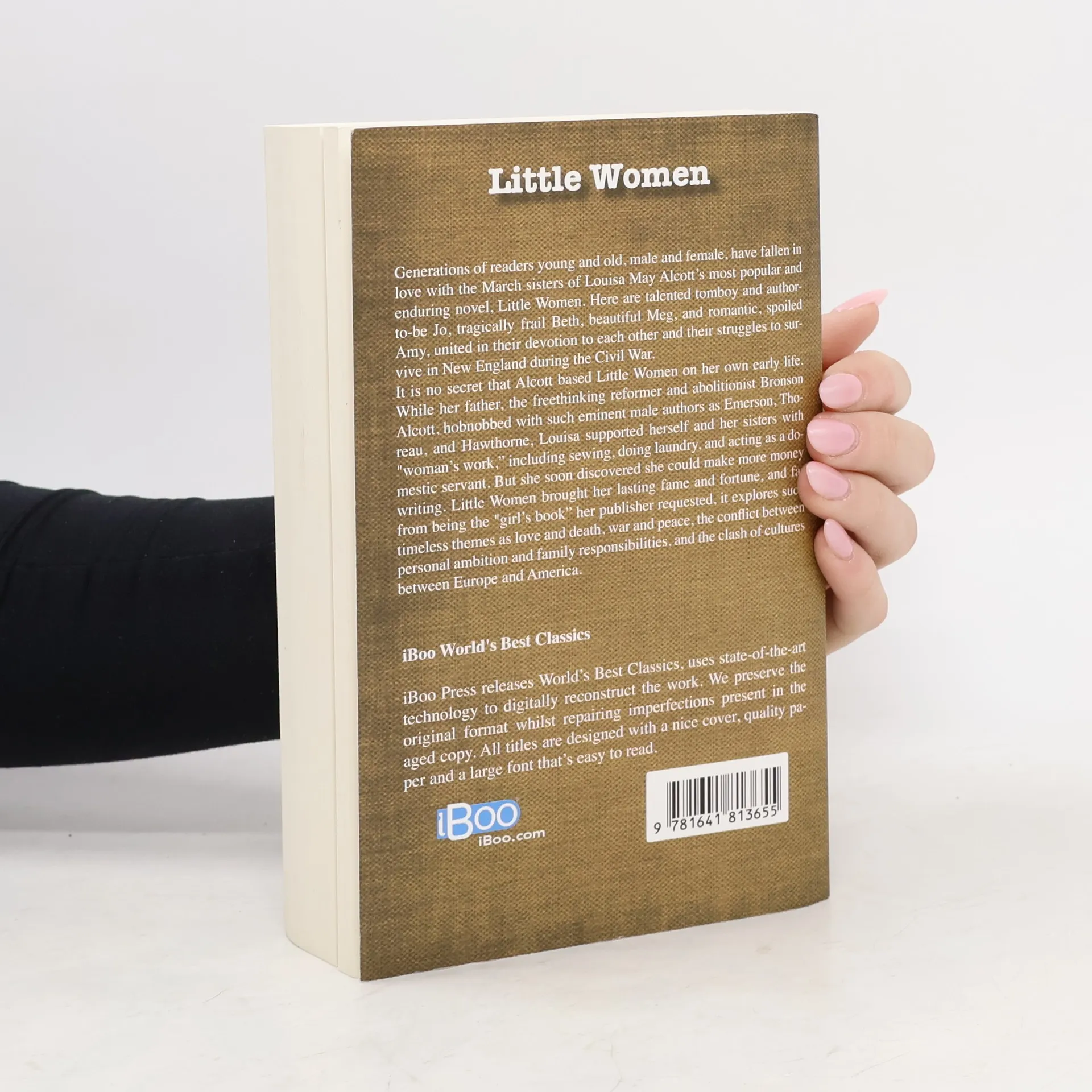 Generations of readers young and old, male and female, have fallen in love with the March sisters of Louisa May Alcott's most popular and enduring novel, Little Women. Here are talented tomboy and author-to-be Jo, tragically frail Beth, beautiful Meg, and romantic, spoiled Amy, united in their devotion to each other and their struggles to survive in New England during the Civil War. It is no secret that Alcott based Little Women on her own early life. While her father, the freethinking reformer and abolitionist Bronson Alcott, hobnobbed with such eminent male authors as Emerson, Thoreau, and Hawthorne, Louisa supported herself and her sisters with "woman's work," including sewing, doing laundry, and acting as a domestic servant. But she soon discovered she could make more money writing. Little Women brought her lasting fame and fortune, and far from being the "girl's book" her publisher requested, it explores such timeless themes as love and death, war and peace, the conflict between personal ambition and family responsibilities, and the clash of cultures between Europe and America. iBoo World's Best Classics iBoo Press releases World's Best Classics, uses state-of-the-art technology to digitally reconstruct the work. We preserve the original format whilst repairing imperfections present in the aged copy. All titles are designed with a nice cover, quality paper and a large font that's easy to read.