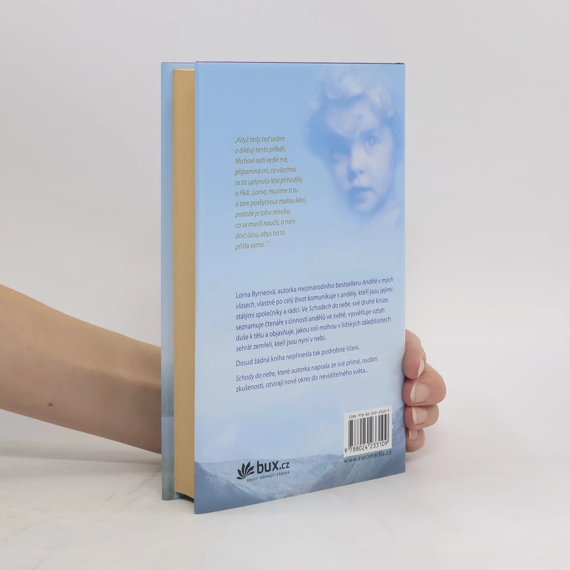 Lorna Byrneová, autorka mezinárodního bestselleru Andělé v mých vlasech, od útlého věku vídá anděly a hovoří s nimi. Ve Schodech do nebe, své druhé knize, seznamuje čtenáře s činností andělů ve světě, vysvětluje vztah lidské duše k lidskému tělu a objasňuje, jakou roli mohou v lidských záležitostech sehrát zemřelí, kteří jsou nyní v nebi. Závažná je kapitola věnovaná záměrům, které má Bůh a andělé s lidstvem do budoucnosti.