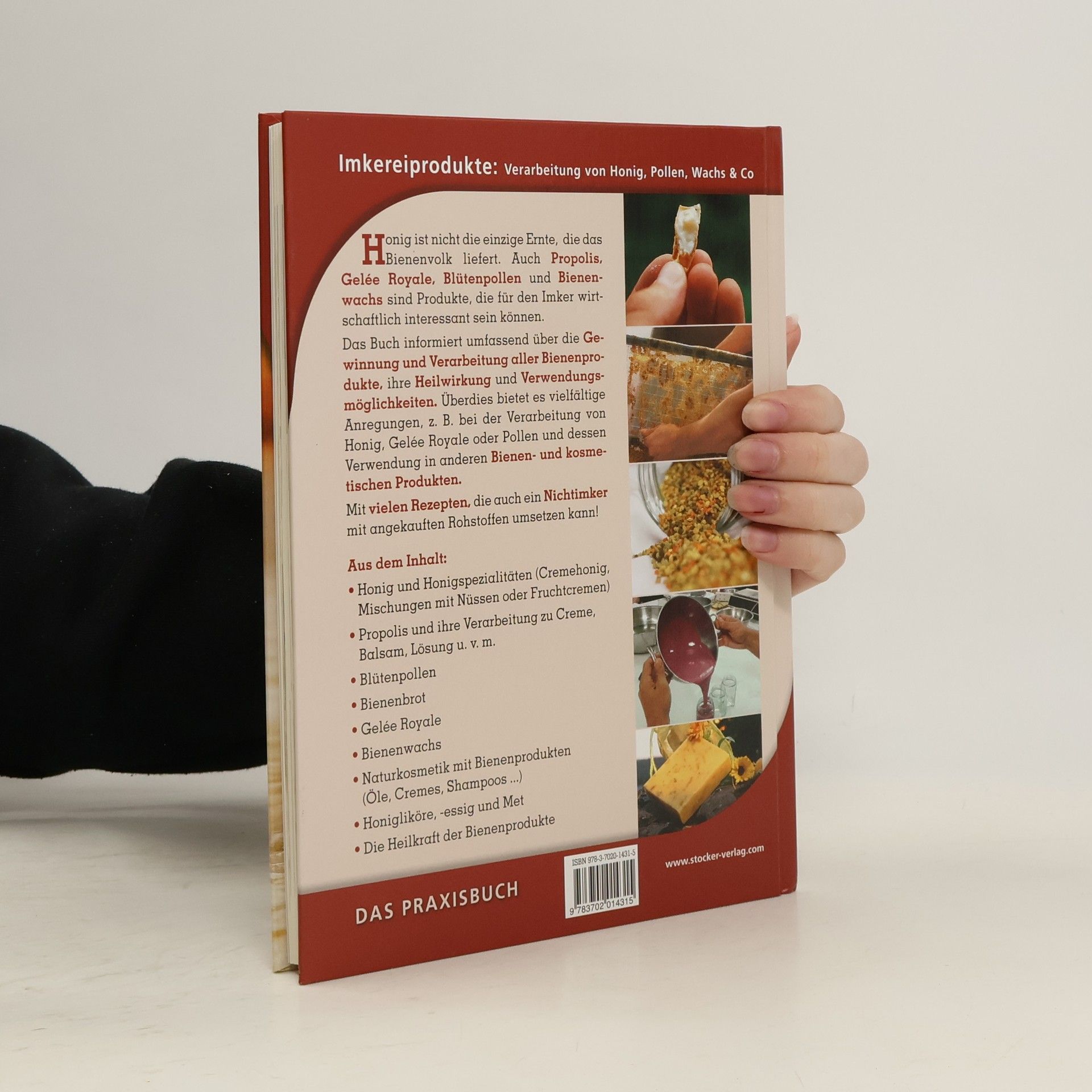 Honig, Pollen, Propolis … Außer Honig liefert uns das Bienenvolk noch eine Vielzahl anderer Produkte, deren Heilkraft bekannt ist oder die in der Naturkosmetik Verwendung finden. Und auch aus dem Honig lassen sich viele Spezialitäten herstellen. Das Buch informiert umfassend über die Gewinnung und Verarbeitung aller Bienenprodukte, ihre Heilwirkung und ihre Verwendungsmöglichkeiten. Mit vielen Rezepten, die auch ein Nichtimker mit angekauften Rohstoffen umsetzen kann! Honig und Honigspezialitäten (Cremehonig, Mischungen mit Nüssen oder Fruchtcremen) Propolis und ihre Verarbeitung zu Creme, Balsam, Lösung u. v. m. Blütenpollen Bienenbrot Gelée Royale Bienenwachs Naturkosmetik mit Bienenprodukten (Öle, Cremes, Shampoos.) Honigliköre, -essig und Met Der Autor Wolfgang Oberrisser unterrichtet an der Imkerschule Warth/NÖ.