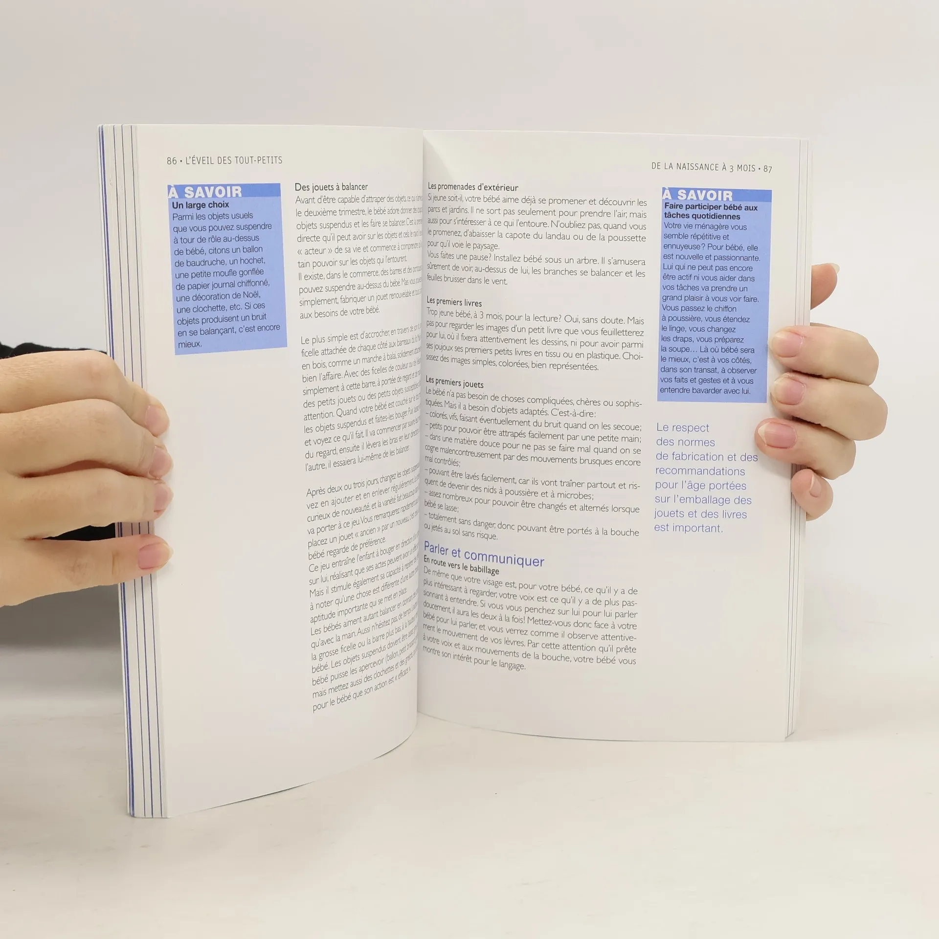 Tous les bébés sont éveillés ! Mais laisser bébé s'ébattre librement entouré de ses jouets n'est pas suffisant. Les parents ont un rôle actif à jouer dans cette grande aventure. Cet ouvrage donne des informations, des idées, des pistes pour des moments d'échange privilégiés. Pour chaque tranche d'âge, vous trouverez : les dernières connaissances sur le développement moteur et sensoriel de votre enfant, des activités et des jeux pour l'aider à grandir.