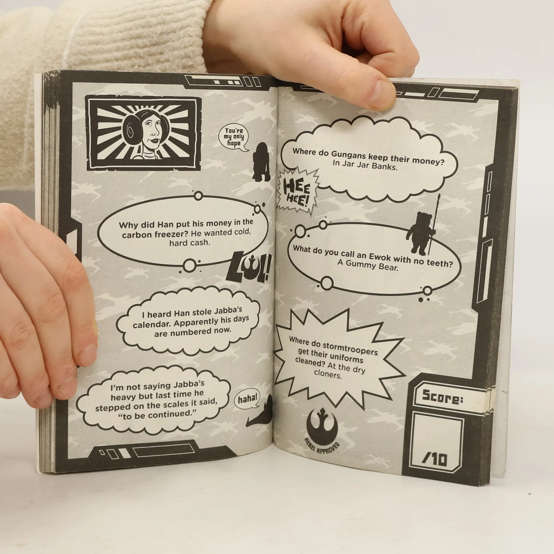 I hear someone picked Yoda's pocket? Who would stoop so low? What did the rancor say when it ate the wookiee? Mmm ...chewy. It's comedy contest night at Jabba the Hutt's palace, and all of your favourite Star Wars heroes and villains have brought their best jokes. Who will be the winner? You decide whether Obi-Wan Kenobi is actually funnier than Emperor Palpatine. Or if an ewok has more wit than a wookie. This book is sure to have even the darkest Sith laughing his head off. Look out for other Star Wars activity titles: Star Wars Where's the Wookiee Search and Find Book; Star Wars Starfighter Workshop; Star Wars A New Hope Activity Book; Star Wars Return of the Jedi Activity Book; Star Wars The Empire Strikes Back Activity Book; Star Wars Doodle Book; Star Wars R2-D2's Droid Workshop: Make Your Own R2-D2; Star Wars Rebels: Rebels Rule Activity Book; and, Star Wars Transfer Activity Book.