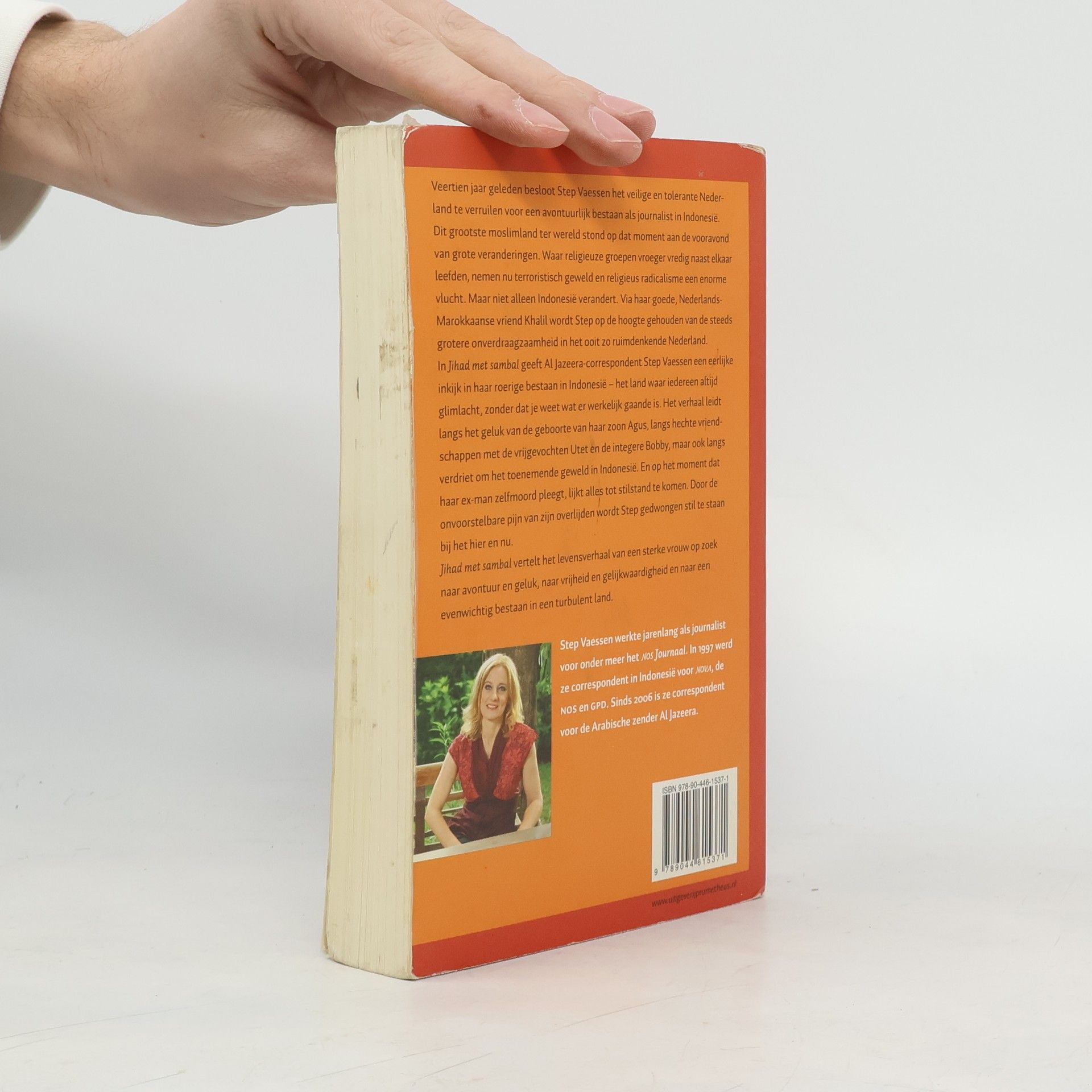 Veertien jaar geleden besloot Step Vaessen het veilige en tolerante Nederland te verruilen voor een avontuurlijk bestaan als journalist in Indonesië. Dit grootste moslimland ter wereld stond op dat moment aan de vooravond van grote veranderingen. Waar religieuze groepen vroeger vredig naast elkaar leefden, nemen nu terroristisch geweld en religieus radicalisme een enorme vlucht. Maar niet alleen Indonesië verandert. Via haar goede, Nederlands-Marokkaanse vriend Khalil wordt Step op de hoogte gehouden van hoe Nederland, waar homohuwelijken en coffeeshops ooit de normaalste zaak van de wereld waren, met de dag onverdraagzamer wordt. In Jihad met sambal geeft Al Jazeera-correspondent Step Vaessen een eerlijke inkijk in haar roerige bestaan in Indonesië – het land waar iedereen altijd glimlacht, zonder dat je weet wat er werkelijk gaande is. Het verhaal leidt langs het geluk van de geboorte van haar zoon Agus, langs hechte vriendschappen met de vrijgevochten Utet en de integere Bobby, maar ook langs verdriet om het toenemende geweld in Indonesië. En op het moment dat haar ex-man zelfmoord pleegt, lijkt het hele leven tot stilstand te komen. Door de ongelooflijke pijn van zijn overlijden wordt Step gedwongen stil te staan bij het hier en nu. Jihad met sambal vertelt het levensverhaal van een sterke vrouw op zoek naar avontuur en geluk, naar vrijheid en gelijkwaardigheid en naar een evenwichtig bestaan in een turbulent land.