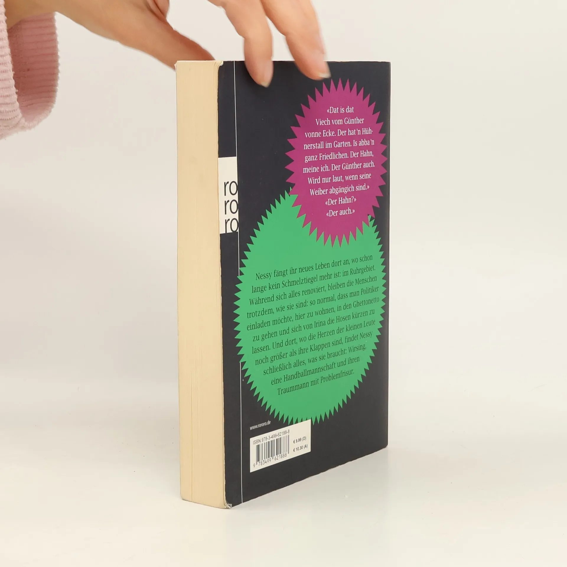 «Dat is dat Viech vom Günther vonne Ecke. Der hat ’n Hühnerstall im Garten. Is abba ’n ganz Friedlichen. Der Hahn, meine ich. Der Günther auch. Wird nur laut, wenn seine Weiber abgängich sind.» «Der Hahn?» «Der auch.» Nessy fängt ihr neues Leben dort an, wo schon lange kein Schmelztiegel mehr ist: im Ruhrgebiet. Während sich alles renoviert, bleiben die Menschen trotzdem, wie sie sind: so normal, dass man Politiker einladen möchte, hier zu wohnen, in den Ghettonetto zu gehen und sich von Irina die Hosen kürzen zu lassen. Und dort, wo die Herzen der kleinen Leute noch größer als ihre Klappen sind, findet Nessy schließlich alles, was sie braucht: Wirsing, eine Handballmannschaft und ihren Traummann mit Problemfrisur.