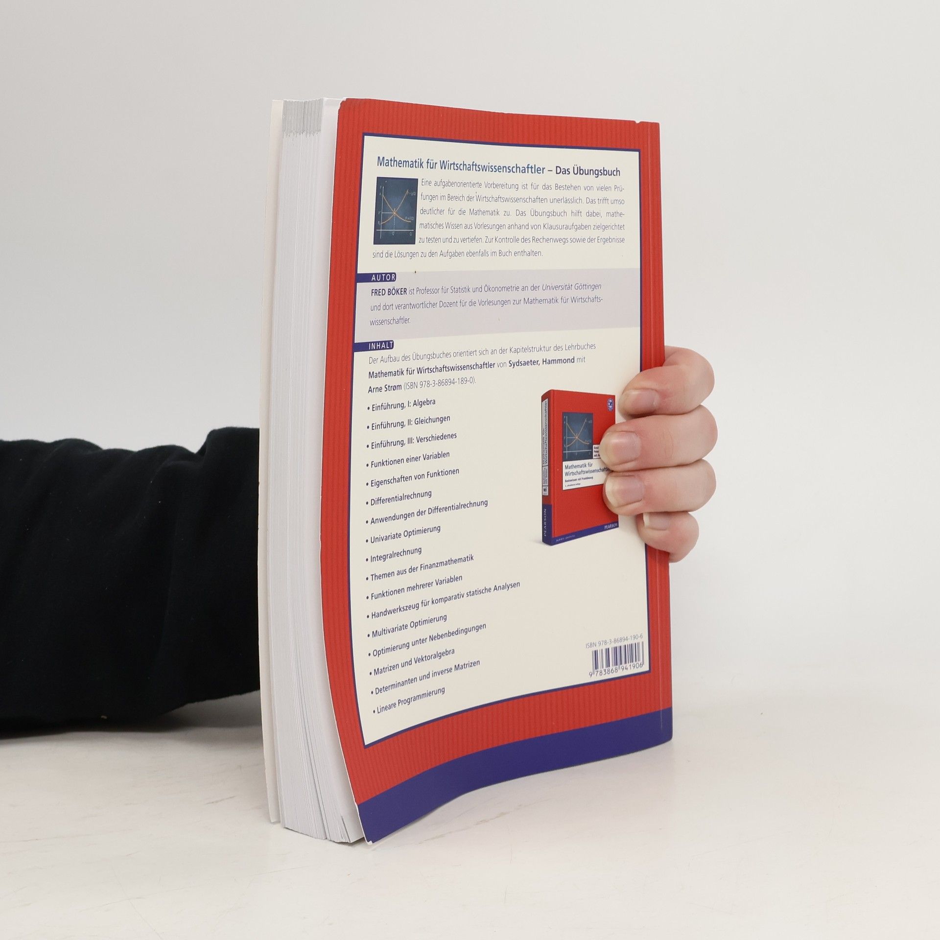 Eine aufgabenorientierte Vorbereitung ist für das Bestehen von vielen Prüfungen im Bereich der Wirtschaftswissenschaften unerlässlich. Das trifft umso deutlicher für die Mathematik zu. Das Übungsbuch hilft dabei, mathematisches Wissen aus Vorlesungen anhand von Klausuraufgaben zielgerichtet zu testen und zu vertiefen. Zur Kontrolle des Rechenwegs sowie der Ergebnisse sind die Lösungen zu den Aufgaben ebenfalls im Buch enthalten.Der Aufbau des Übungsbuches orientiert sich an der Kapitelstruktur des Lehrbuches Mathematik für Wirtschaftswissenschaftler (ISBN 978-3-86894-306-1) von Sydsaeter, Hammond, Strøm und Carjaval.
