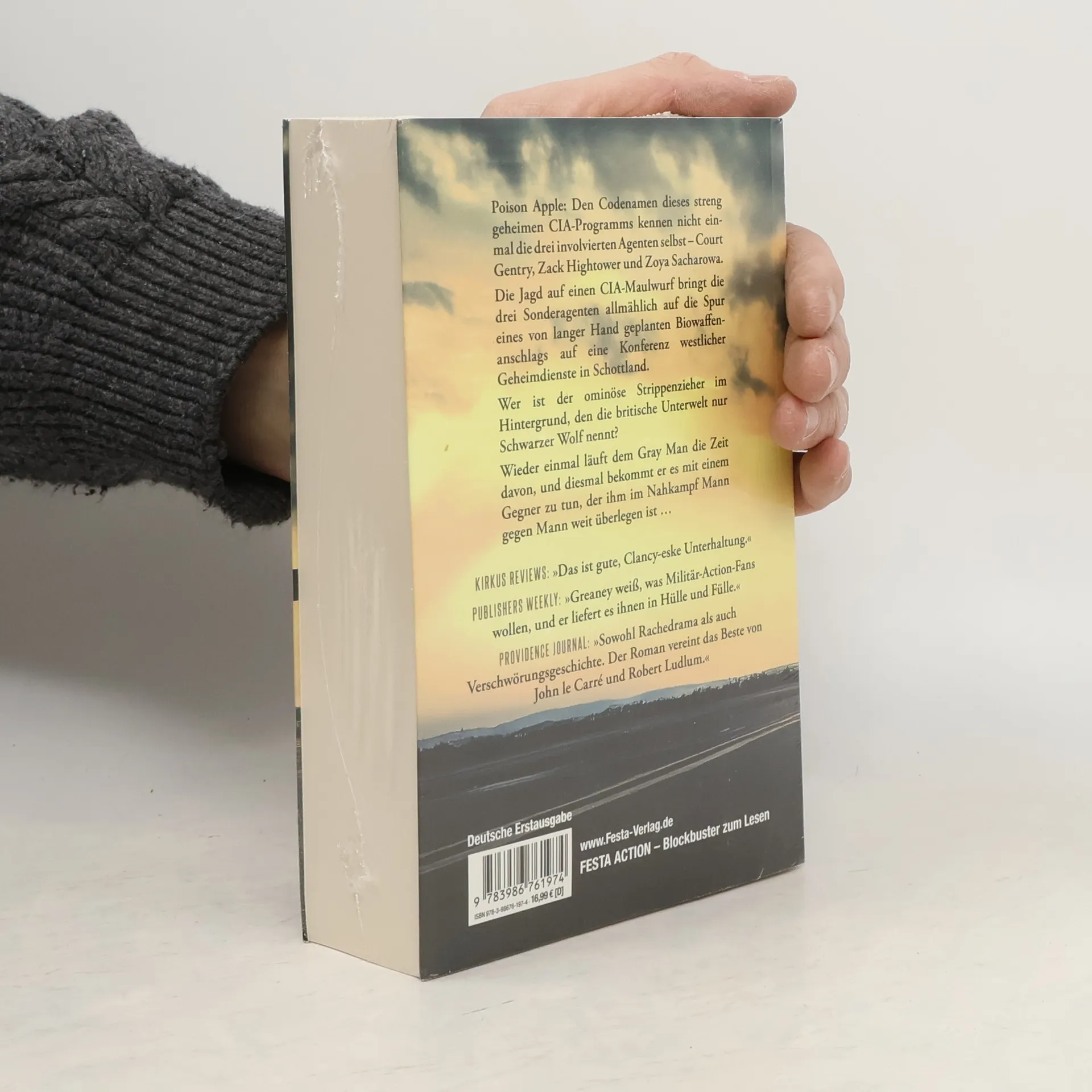 Poison Apple: Den Codenamen dieses streng geheimen CIA-Programms kennen nicht einmal die drei involvierten Agenten selbst – Court Gentry, Zack Hightower und Zoya Sacharowa. Die Jagd auf einen CIA-Maulwurf bringt die drei Sonderagenten allmählich auf die Spur eines von langer Hand geplanten Biowaffenanschlags auf eine Konferenz westlicher Geheimdienste in Schottland. Wer ist der ominöse Strippenzieher im Hintergrund, den die britische Unterwelt nur Schwarzer Wolf nennt? Wieder einmal läuft dem Gray Man die Zeit davon, und diesmal bekommt er es mit einem Gegner zu tun, der ihm im Nahkampf Mann gegen Mann weit überlegen ist … Kirkus Reviews: »Das ist gute, Clancy-eske Unterhaltung.« Publishers Weekly: »Greaney weiß, was Militär-Action-Fans wollen, und er liefert es ihnen in Hülle und Fülle.« Providence Journal: »Sowohl Rachedrama als auch Verschwörungsgeschichte. Der Roman vereint das Beste von John le Carré und Robert Ludlum.«