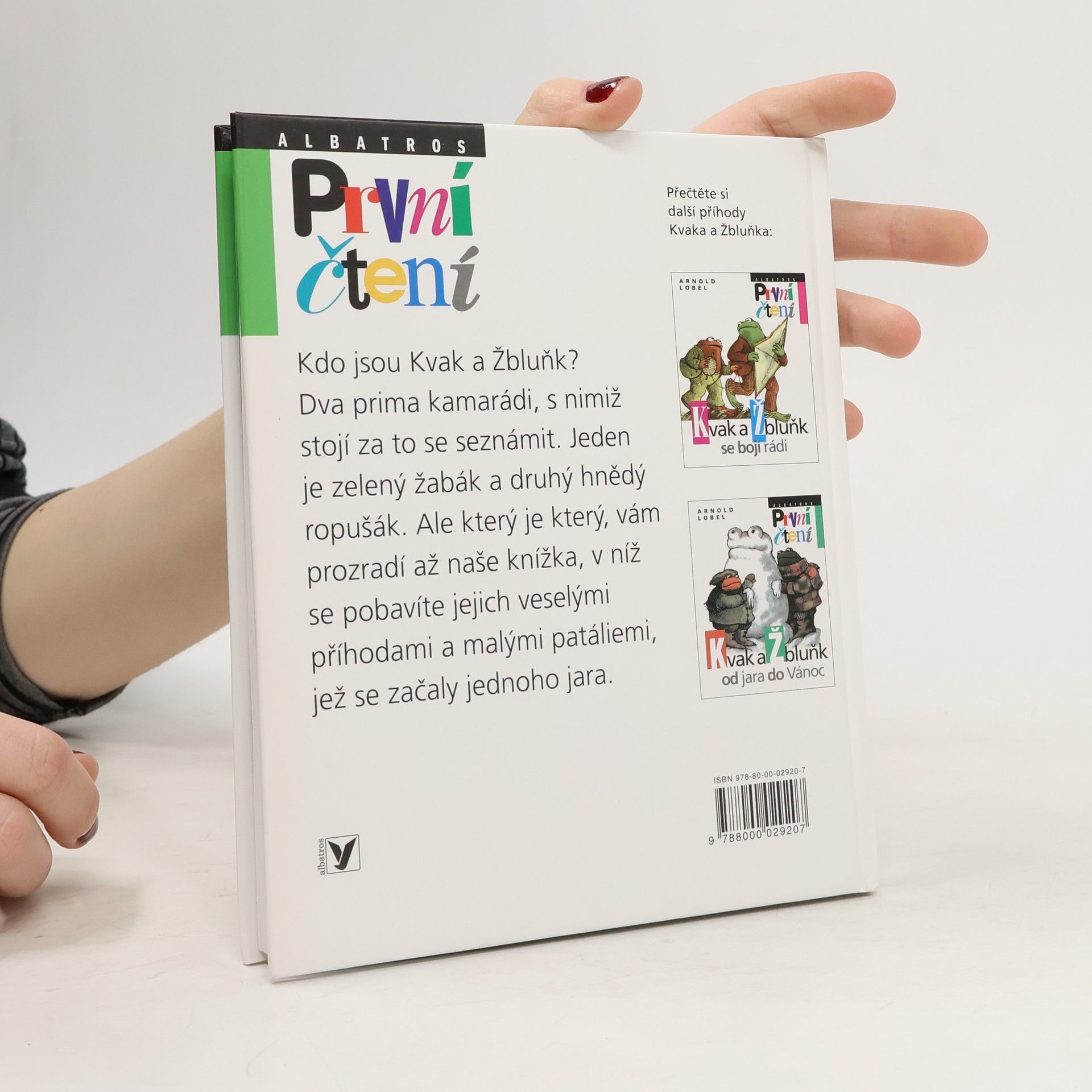 Úsměvné a hřejivé vyprávění o dvou kamarádech, zeleném žabákovi Kvakovi a hnědém ropušákovi Žbluňkovi potěšilo čtenáře nejen v zemi svého vzniku, ale i u nás (včetně dalších pokračování). Kdo by si tedy znovu rád nepřečetl o drobných příhodách a patáliích, které potkaly oba přátele, když se na jaře probudili ze zimního spánku. Třeba právě o tom, jak hledali ztracený knoflík, jak se koupali v řece, jak pěstovali květiny či jak statečně utíkali před draky a obry.