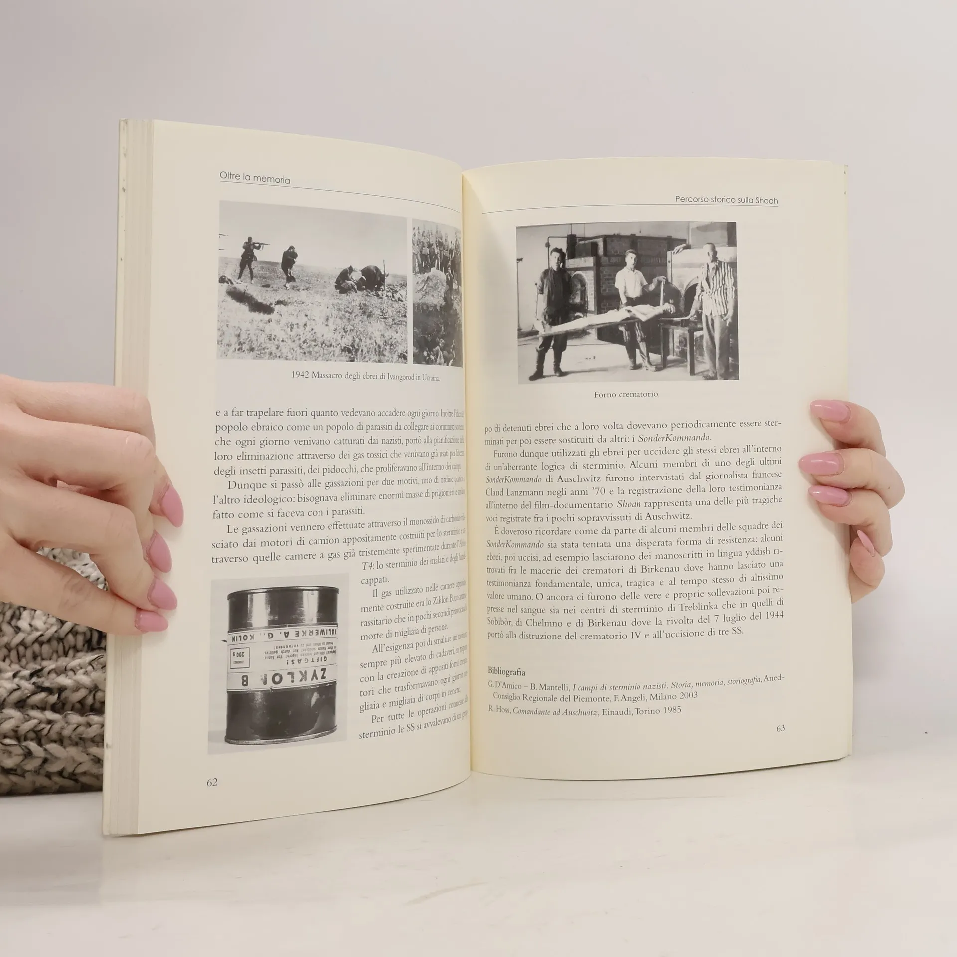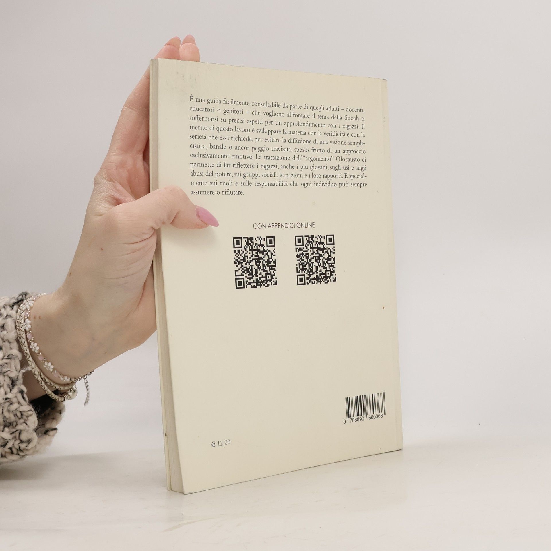 It is an easily-reading guide for those adults - teachers, educators or parents - who want to deal with the theme of the Holocaust with young people. This work develops the material with the truthfulness and the seriousness it requires, to avoid the diffusion of a simplistic, banal or even worse misunderstood vision, often the result of an exclusively emotional approach. The argument is an important input to make young people think about the uses and abuses of power, the social groups, the nations and the relationships between each others. And above all about the roles and responsibilities that everyone can always assume or reject.
