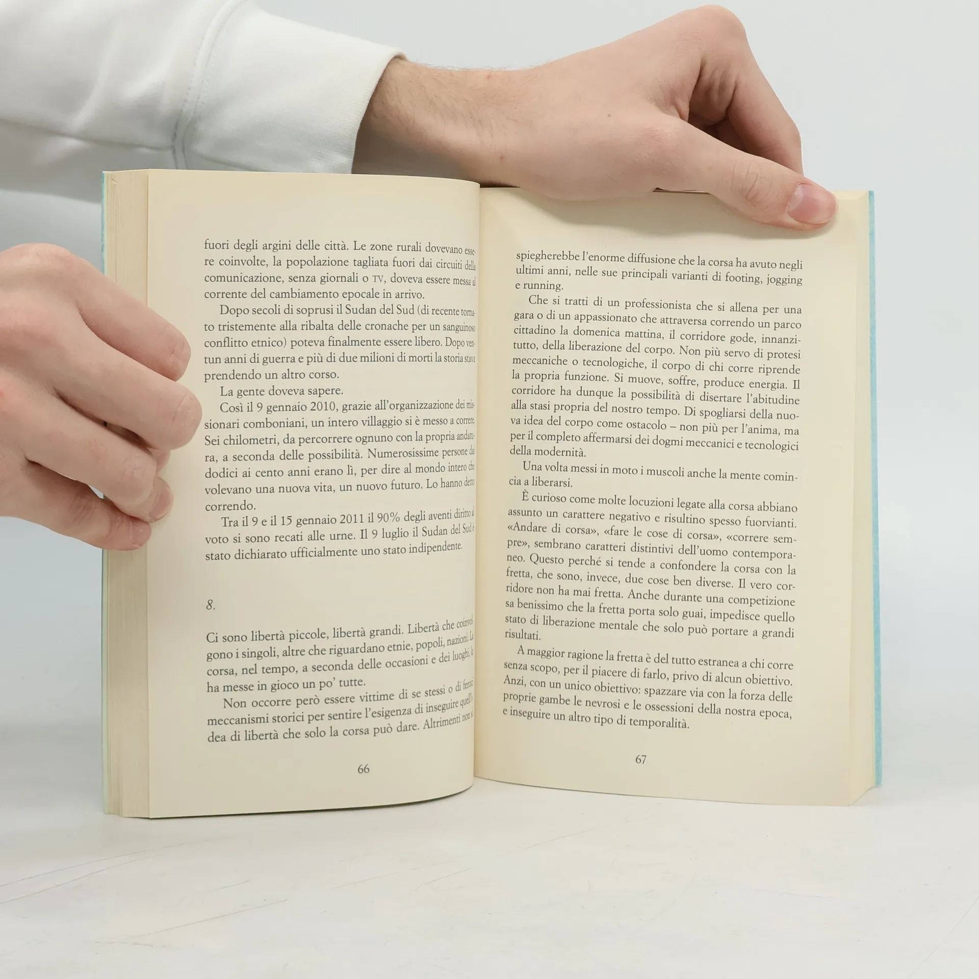 «Correre rende felici». Si potrebbe riassumere così l’affascinante percorso che Gaia De Pascale traccia in queste pagine: unica fra tutte le discipline sportive, la corsa è una filosofia di vita, e insieme metafora stessa del vivere. Chi corre lo fa per spezzare ogni condizionamento o limite: si oppone al destino, esprime la propria nostalgia per l’infanzia perduta o per un ideale di purezza e autenticità a cui tendere, sfoga emozioni e tensioni sopite da troppo tempo, supera le barriere che la vita gli ha imposto. In una parola, correre è sinonimo di libertà, oltre i vincoli sociali, culturali, oltre le sbarre di qualsiasi prigione, mentale o reale, fisica o emotiva.Ecco quindi una ricchissima carrellata di figure, ognuna emblema di tale pulsione, dal mito greco ai conflitti sociali del Novecento, dalla savana africana ad Alice nel Paese del Meraviglie, dagli scatti brucianti dei velocisti alle imprese titaniche degli ultrarunner, fra cui spicca il leggendario Marco Olmo. Le storie raccolte in questo libro sono tante e diversissime fra loro, lontane nello spazio e nel tempo della storia, ma non è difficile riconoscerne un centro comune. Quando si tratta di correre, agonismo e competizione non contano più di tanto: l’obiettivo non è sconfiggere l’avversario o inanellare l’ennesimo record, ma arrivare in fondo, raggiungere il traguardo, vincere la sfida che prima di tutto affrontiamo con noi stessi, le paure, le prove durissime di cui il destino ha costellato la nostra strada. Correre è persino una forma di follia, ma di «follia sana, una follia che è salvezza». E la proverbiale «solitudine del maratoneta» non è mai una cella, ma la libertà più pura, la vittoria più profonda, la capacità di arrivare al fondo di noi stessi, di pensare l’impensabile. Quando si corre ci si dimentica della fatica, del dolore, del respiro che sembra mancare a ogni passo. Ci si dimentica perfino di correre: «Forse il segreto è tutto qui. Correre come si sogna».
