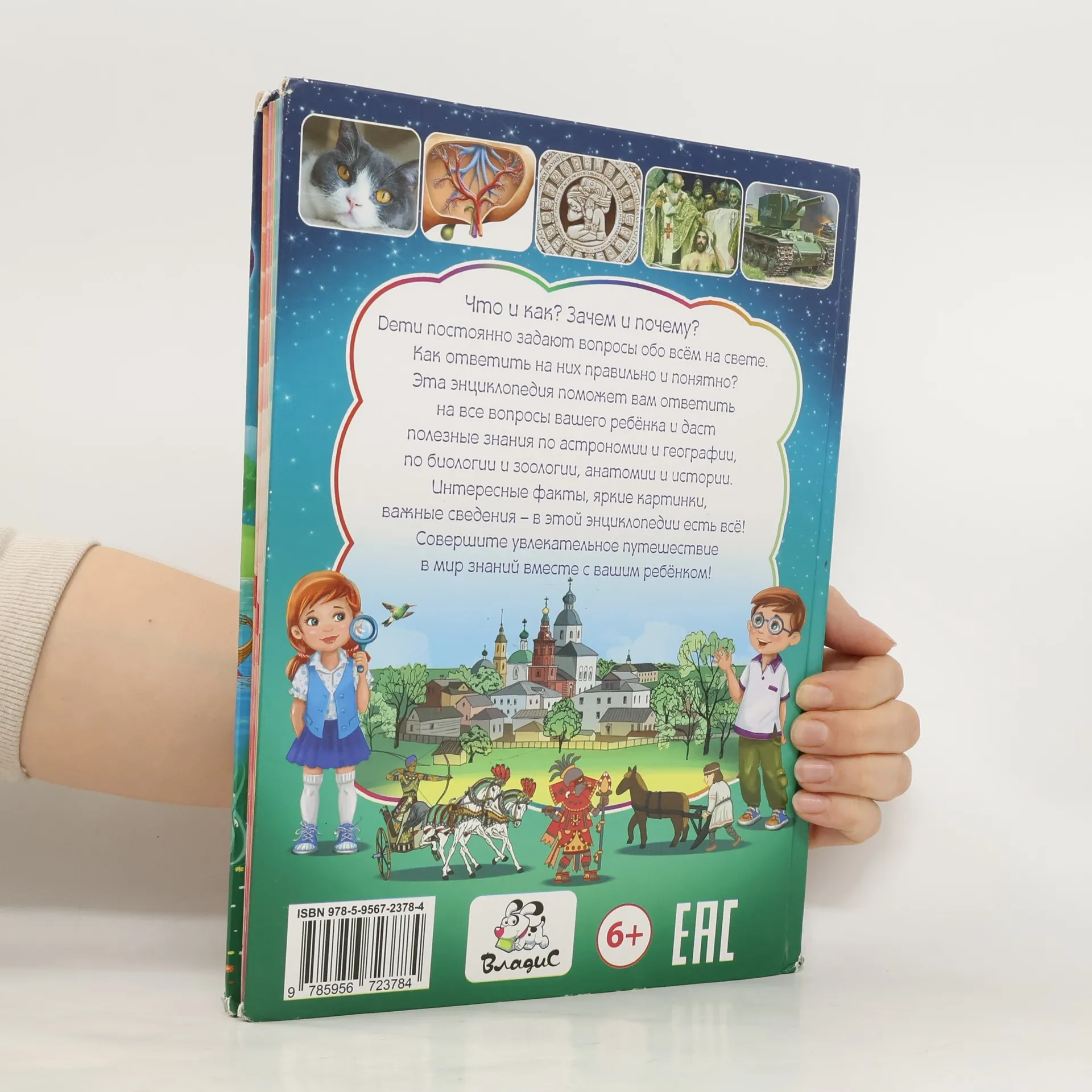 "Что и как? Зачем и почему? Дети постоянно задают вопросы обо всём на свете. Как ответить на них правильно и понятно? Эта энциклопедия поможет вам ответить на все вопросы вашего ребёнка и даст полезные знания по астрономии и географии, по биологии и зоологии, анатомии и истории. интересные факты, яркие картинки, важные сведения - в этой энциклопедии есть всё! Совершите увлекательное путешествие в мир знаний вместе с вашим ребёнком!" --