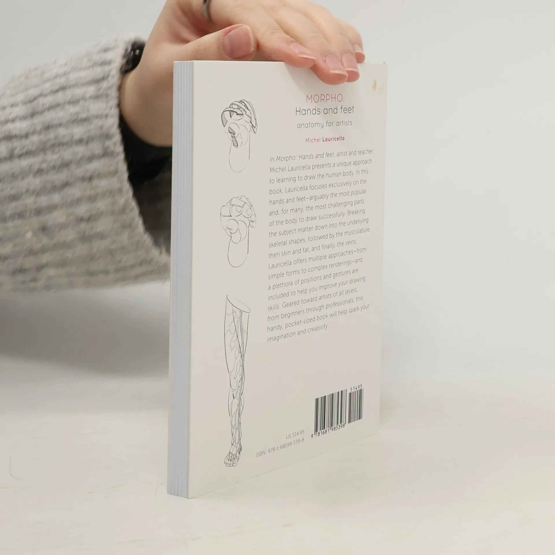 In Morpho: Hands and feet, artist and teacher Michel Lauricella presents a unique approach to learning to draw the human body. In this book, Lauricella focuses exclusively on the hands and feet--arguably the most popular and, for many, the most challenging parts of the body to draw successfully. Breaking the subject matter down into the underlying skeletal shapes, followed by the musculature, then skin and fat, and finally, the veins, Lauricella offers multiple approaches--from simple forms to complex renderings--and a plethora of positions and gestures are included to help you improve your drawing skills. Geared toward artists of all levels, from beginners through professionals, this handy, pocket-sized book will help spark your imagination and creativity. (Publisher's Note: This book features an "exposed" binding style. This is intentional as it is designed to help the book lay flat as you draw.)
