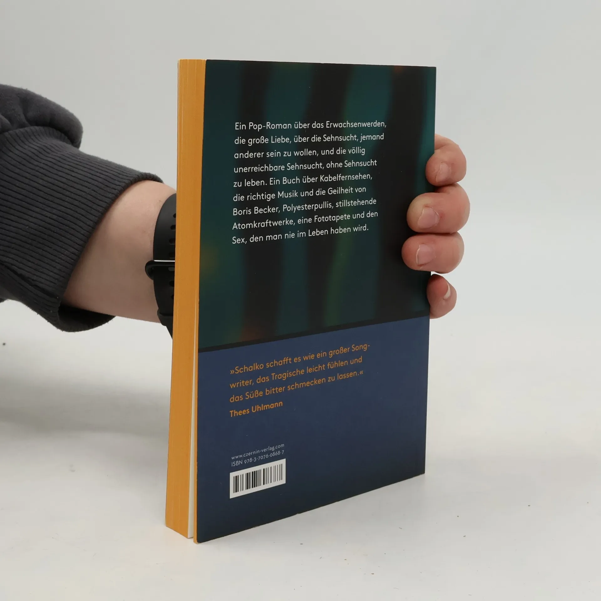 "Wenn man aufhört, seine Freundin zum Flughafen zu bringen, kann dies drei Gründe haben: Erstens: Man ist einfach schon ewig zusammen. Zweitens: Man besitzt kein Auto. Drittens: Die Freundin ist Flugbegleiterin …" Ein Pop-Roman über das Erwachsenwerden, die große Liebe, über die Sehnsucht, jemand anderer sein zu wollen, und die völlig unerreichbare Sehnsucht, ohne Sehnsucht zu leben. Ein Buch über Kabelfernsehen, die richtige Musik und die Geilheit von Boris Becker, Polyesterpullis, stillstehende Atomkraftwerke, eine Fototapete und den Sex, den man nie im Leben haben wird. Es handelt sich um eine limitierte Neuausgabe mit Farbschnitt.