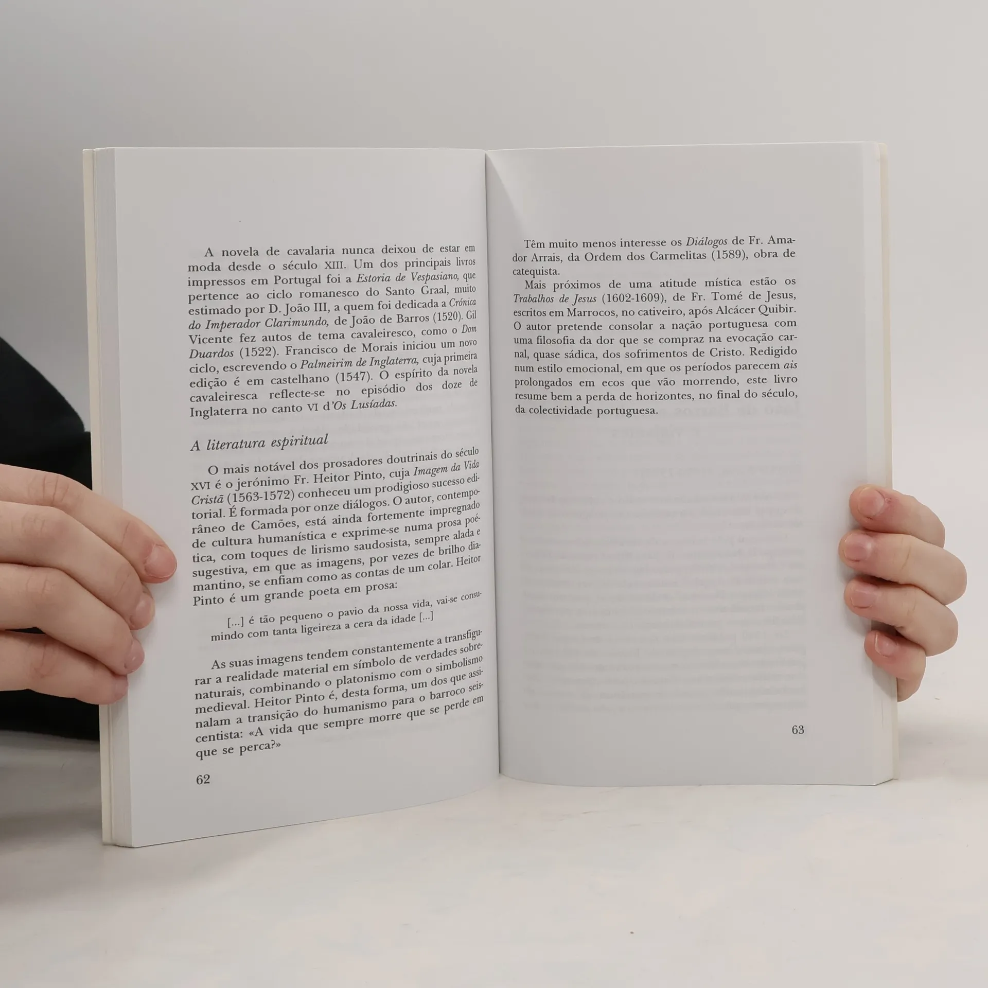 Entre o estudo da época dos cancioneiros e um pequeno comentário a dois romances de José Saramago, António José Saraiva não esquece naturalmente os grandes nomes de Fernão Lopes, Camões, António Vieira ou Fernando Pessoa, mas também não ignora escritores como Jorge Ferreira de Vasconcelos, Filinto Elísio ou Teixeira de Queirós, que as selectas literárias têm injustamente omitido ao longo dos tempos.
