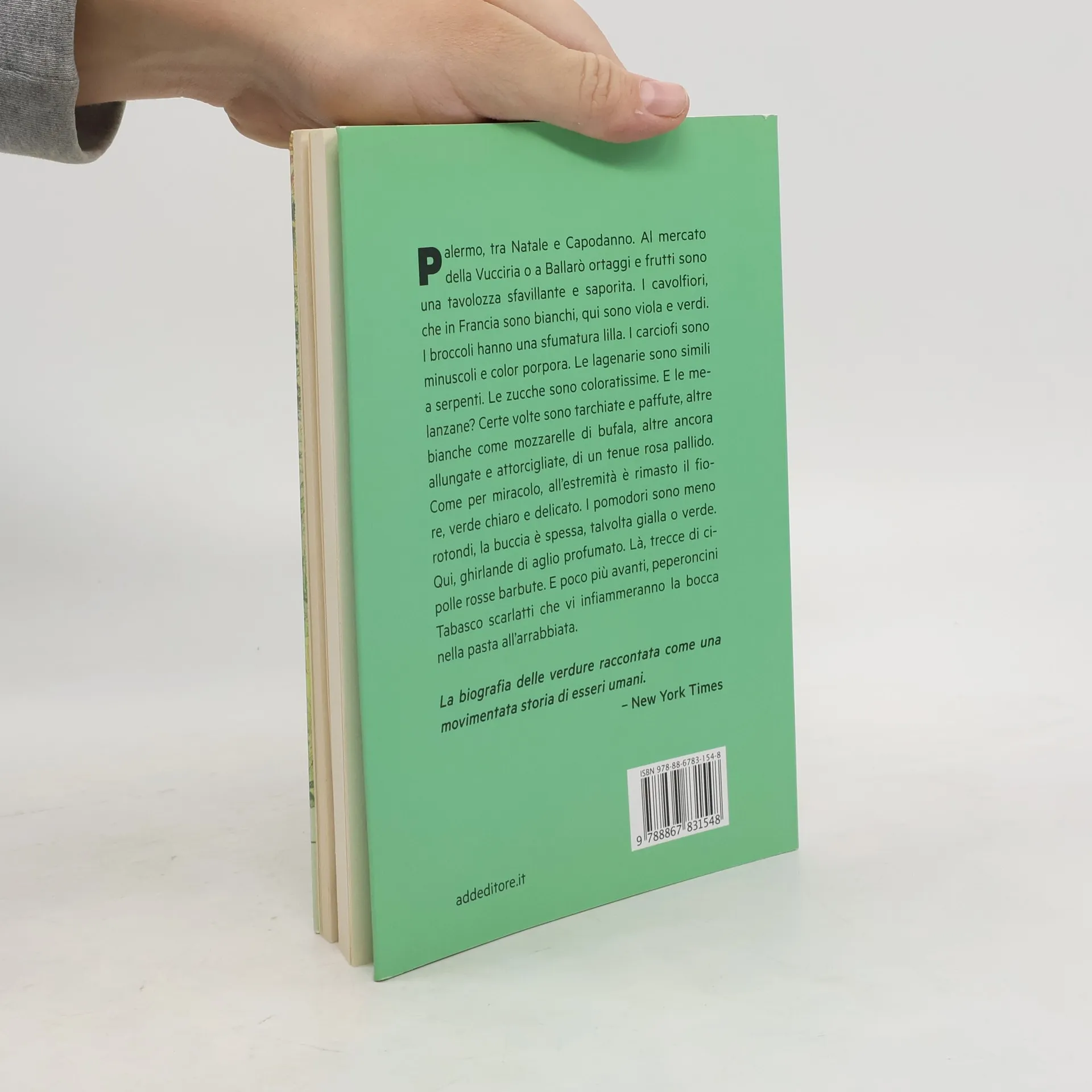 Quando si mangia la verdura è la storia del mondo che si inghiotte, in un unico ortaggio si incontrano la grande storia e la storia dei ricordi di ognuno di noi: le conquiste, la via delle spezie, l’apertura di passaggi marittimi, il commercio tra gli Imperi, l’economia, la diplomazia e la politica mescolati a storie di madri e padri, di nonne e nonni, cucine e dispense piene di sapori.