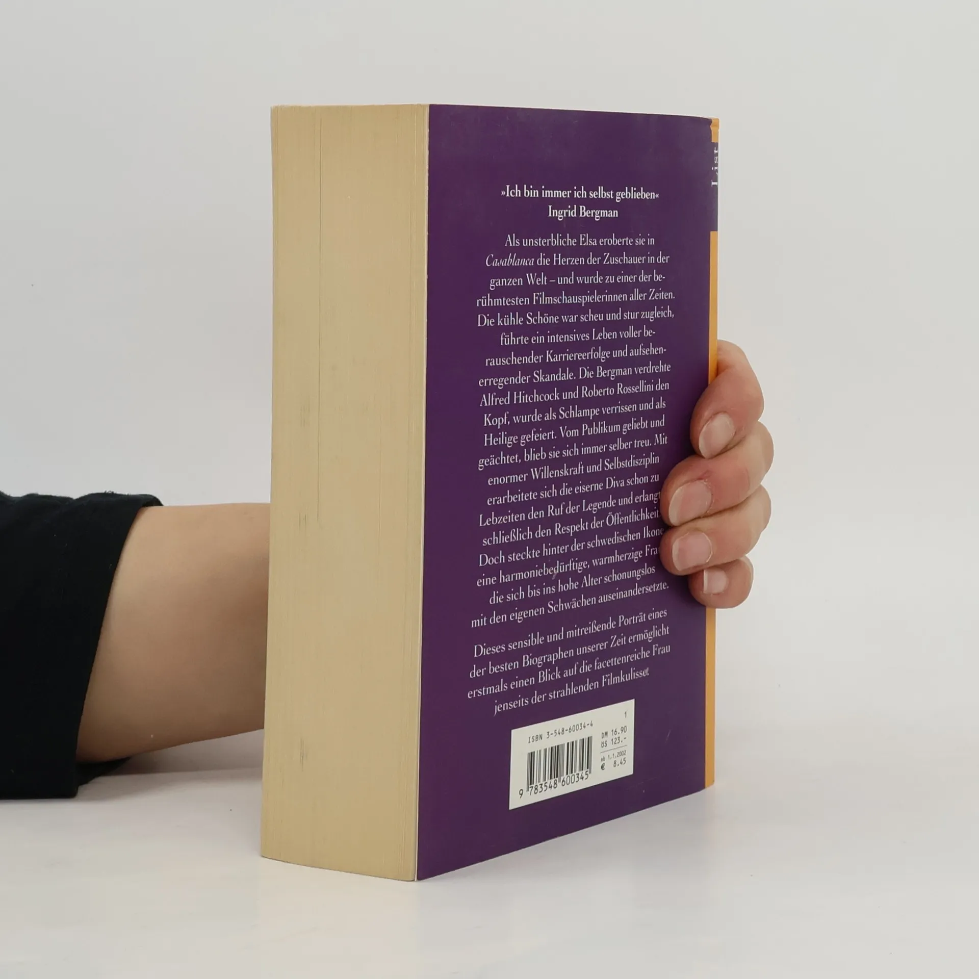 Als unsterbliche Elsa eroberte sie in Casablanca die Herzen der Zuschauer in der ganzen Welt - und wurde zu einer der berühmtesten Filmschauspielerinnen aller Zeiten. Die kühle Schöne war scheu und stur zugleich, führte ein intensives Leben voller berauschender Karriereerfolge und aufsehenerregender Skandale. Die Bergman verdrehte Alfred Hitchcock und Roberto Rossellini den Kopf, wurde als Schlampe verrissen und als Heilige gefeiert. Vom Publikum geliebt und geächtet, blieb sie sich selbst immer treu. Mit enormer Willenskraft und Selbstdisziplin erarbeitete sich die eiserne Diva schon zu Lebzeiten den Ruf der Legende und erlangte schließlich den Respekt der Öffentlichkeit. Doch steckt hinter der schwedischen Ikone eine harmoniebedürftige, warmherzige Frau, die sich bis ins Alter schonungslos mit den eigenen Schwächen auseinandersetzte. Dieses sensible und mitreßende Porträt eines der besten Biographen unserer Zeit ermöglicht erstmals einen Blick auf die facettenreiche Frau jenseits der strahlenden Filmkulisse. (Buchrückentext)
