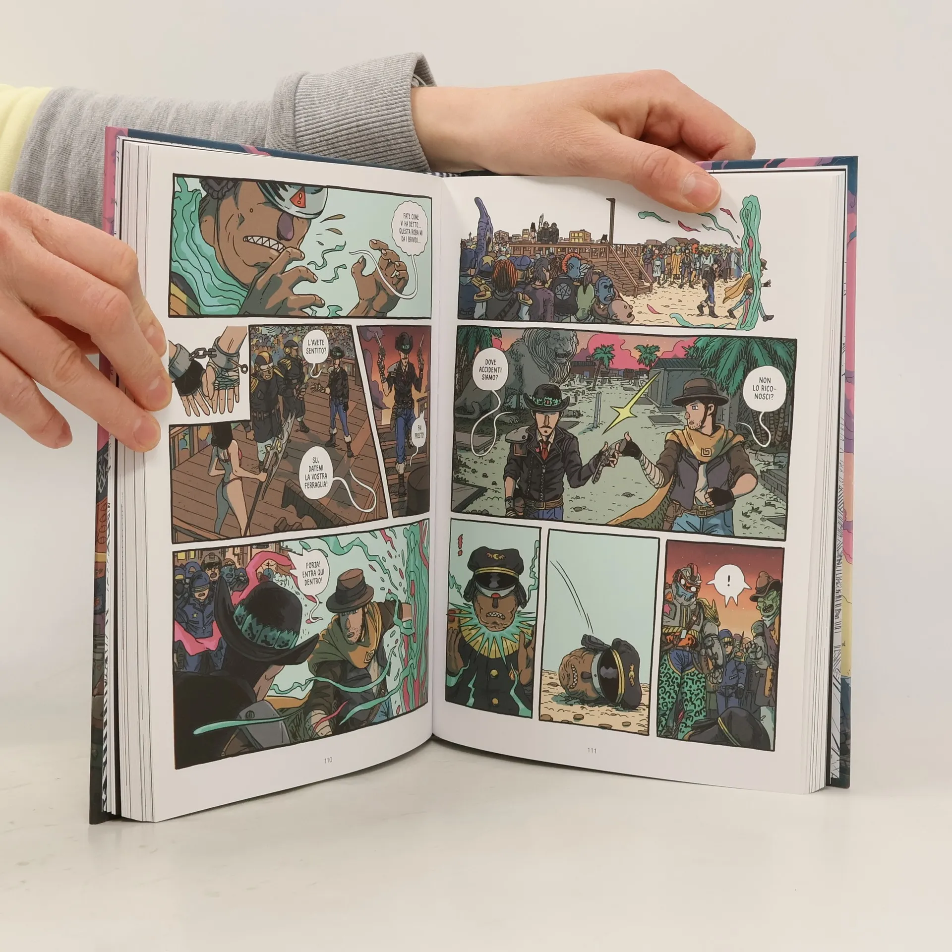 Tre fratelli fuorilegge, su un pianeta dove umani e sauri convivono (mica tanto pacificamente). Ciascuno di loro ha ricevuto un teschio con poteri mistici. Uno di loro ha ricevuto anche... una bambina, che non parla e non ha nome, ma che ha imparato molto bene a sparare. Il west incontra la preistoria, la società dei media e grosso guaio a Thunderat City, nel libro di esordio dell'enigmatico e bravissimo disegnatore noto al mondo semplicemente come Capitan Artiglio, qui nella veste di autore completo. Questo volume è il primo di una trilogia, e quando avrete finito di leggerlo il fatto che ne stiano per arrivare altri due vi sembrerà una bellissima notizia, credeteci.