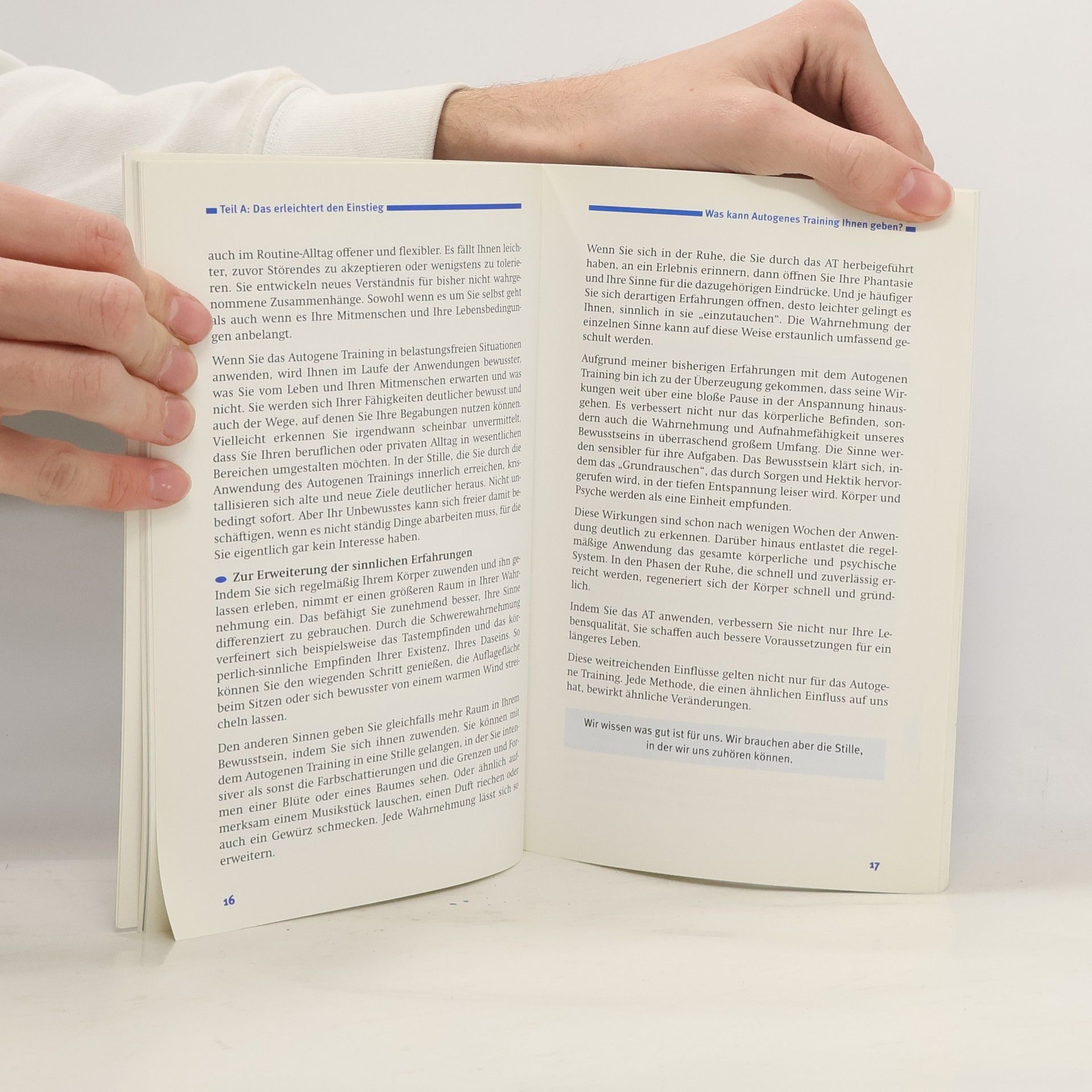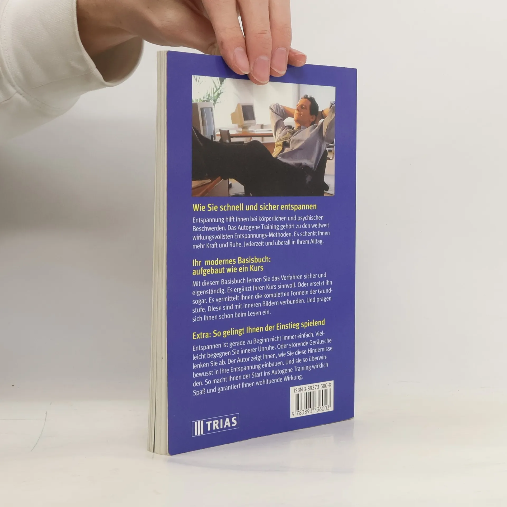 Wie Sie schnell entspannenEntspannung hilft Ihnen bei körperlichen und psychischen Belastungen. Das Autogene Training gehört zu den weltweit wirkungsvollsten Entspannungs-Methoden. Es schenkt Ihnen mehr Kraft und Ruhe. Jederzeit und überall in Ihrem Alltag. Ihr modernes Basisbuch: aufgebaut wie ein Kurs Mit diesem Basisbuch lernen Sie das Verfahren sicher und eigenständig. Es ergänzt Ihren Kurs sinnvoll. Oder ersetzt ihn sogar. Es vermittelt Ihnen die kompletten Formeln der Grundstufe. Diese sind mit inneren Bilder verbunden . Und prägen sich Ihnen schon beim Lesen ein. Extra: So gelingt Ihnen der Einstieg spielend Entspannen ist gerade zu Beginn nicht immer einfach. Vielleicht begegnen Sie innerer Unruhe. Oder störende Geräusche lenken Sie ab. Der Autor zeigt Ihnen, wie Sie diese Hindernisse bewusst in Ihre Entspannung einbauen. Und sie so überwinden. So macht Ihnen der Start ins Autogene Training wirklich Spaß und garantiert Ihnen wohltuende Wirkung.(Copied from Amazon.de)