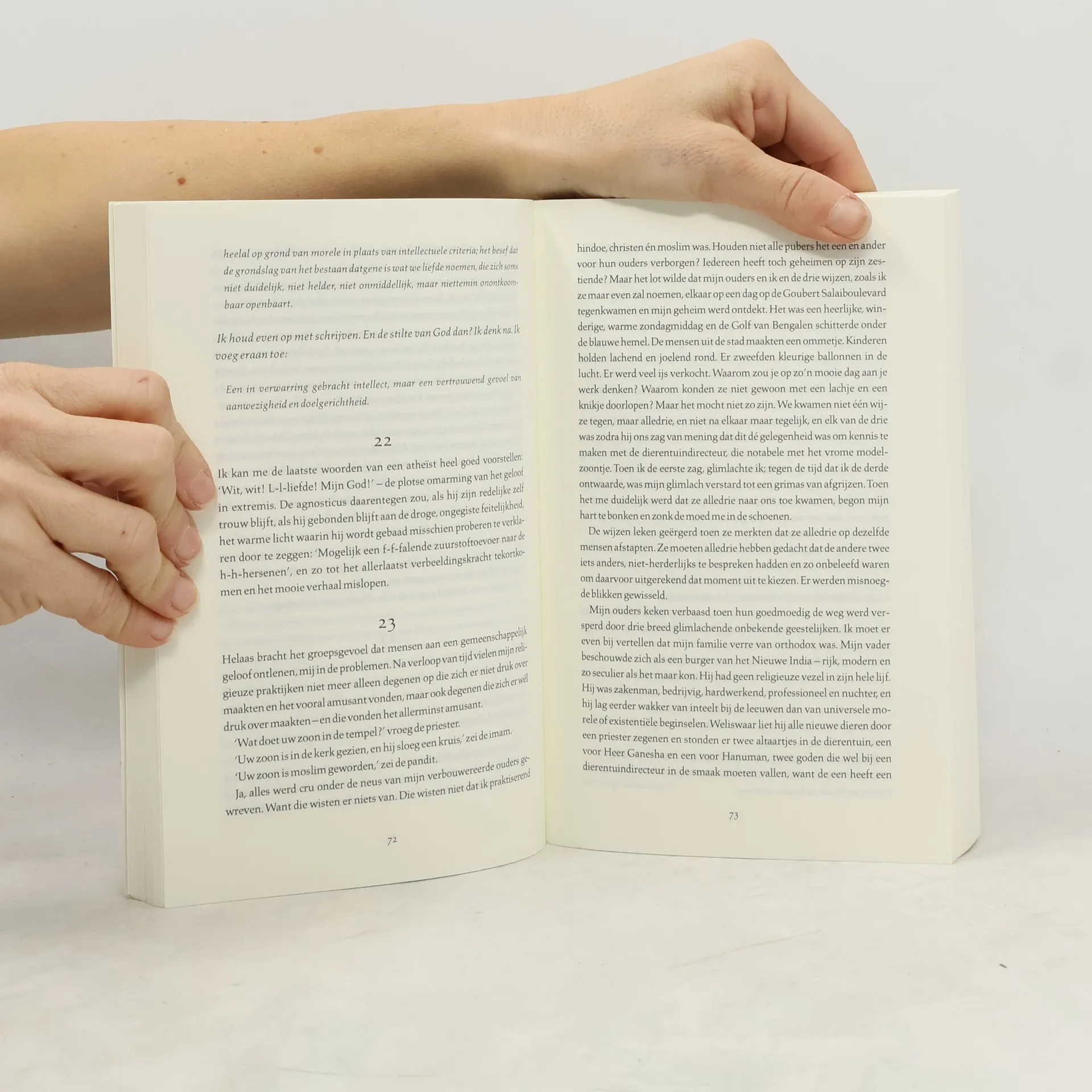 Het leven van Pi vertelt het ongelooflijke verhaal van Piscine Patel (Pi), een zestienjarige Indiase jongen wiens vader een dierentuin in India heeft. Wanneer de familie besluit het land te verlaten, wordt de hele dierentuin ingescheept. Maar het schip vergaat en de enige overlevenden op de reddingssloep zijn Pi, een hyena, een zebra met een gebroken been en een tijger van 200 kilo. 227 dagen dobbert de sloep over de Grote Oceaan – het decor voor een buitengewoon fantasierijke roman. ‘Dit verhaal doet je in God geloven,’ aldus een personage. Dat gaat misschien wat ver, maar wie Het leven van Pi leest, móet wel geloven in de onverwoestbare kracht van verhalen.