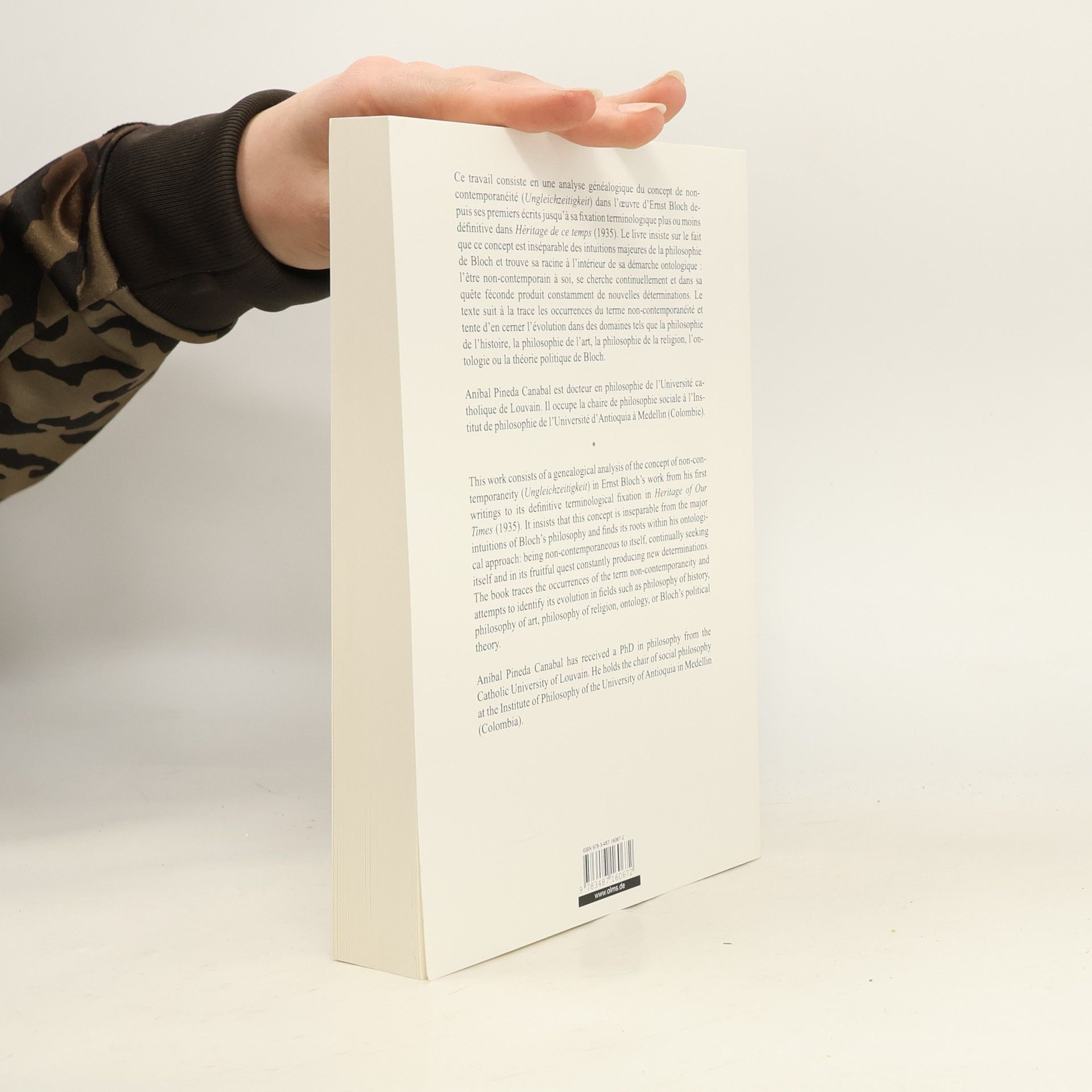 Ce travail consiste en une analyse généalogique du concept de non-contemporanéité (Ungleichzeitigkeit) dans l’œuvre d’Ernst Bloch depuis ses premiers écrits jusqu’à sa fixation terminologique plus ou moins définitive dans Héritage de ce temps (1935). Le livre insiste sur le fait que ce concept est inséparable des intuitions majeures de la philosophie de Bloch et trouve sa racine à l’intérieur de sa démarche ontologique : l’être non-contemporain à soi, se cherche continuellement et dans sa quête féconde produit constamment de nouvelles déterminations. Le texte suit à la trace les occurrences du terme non-contemporanéité et tente d’en cerner l’évolution dans des domaines tels que la philosophie de l’histoire, la philosophie de l’art, la philosophie de la religion, l’ontologie ou la théorie politique de Bloch. Aníbal Pineda Canabal est docteur en philosophie de l’Université catholique de Louvain. Il occupe la chaire de philosophie sociale à l’Institut de philosophie de l’Université d’Antioquia à Medellin (Colombie). *** This work consists of a genealogical analysis of the concept of non-contemporaneity (Ungleichzeitigkeit) in Ernst Bloch’s work from his first writings to its definitive terminological fixation in Heritage of Our Times (1935). It insists that this concept is inseparable from the major intuitions of Bloch’s philosophy and finds its roots within his ontological approach: being non-contemporaneous to itself, continually seeking itself and in its fruitful quest constantly producing new determinations. The book traces the occurrences of the term non-contemporaneity and attempts to identify its evolution in fields such as philosophy of history, philosophy of art, philosophy of religion, ontology, or Bloch’s political theory. Aníbal Pineda Canabal has received a PhD in philosophy from the Catholic University of Louvain. He holds the chair of social philosophy at the Institute of Philosophy of the University of Antioquia in Medellin (Colombia).