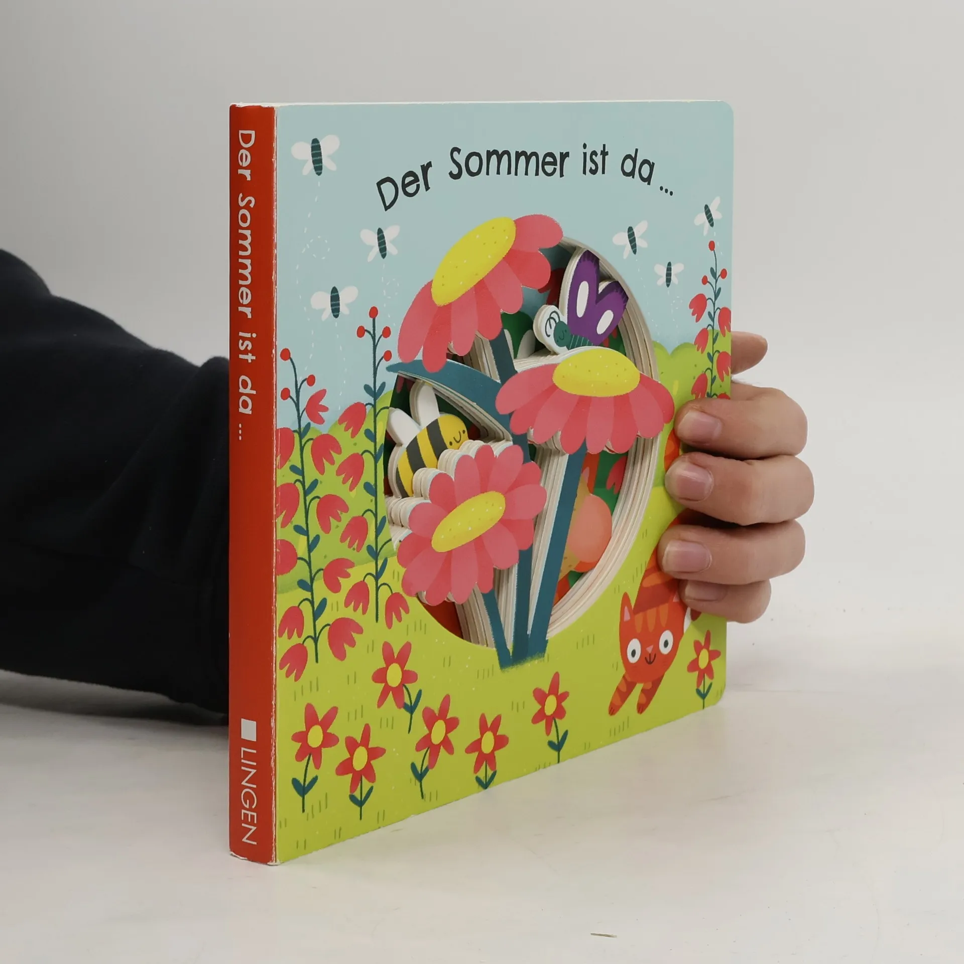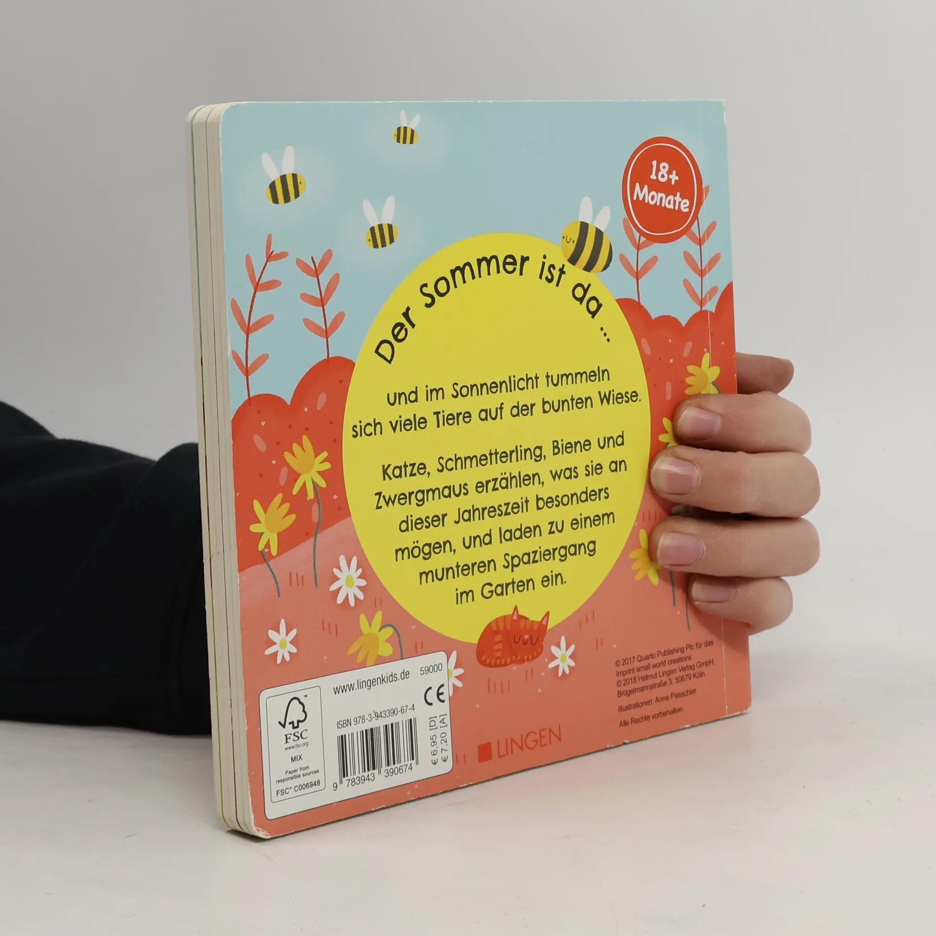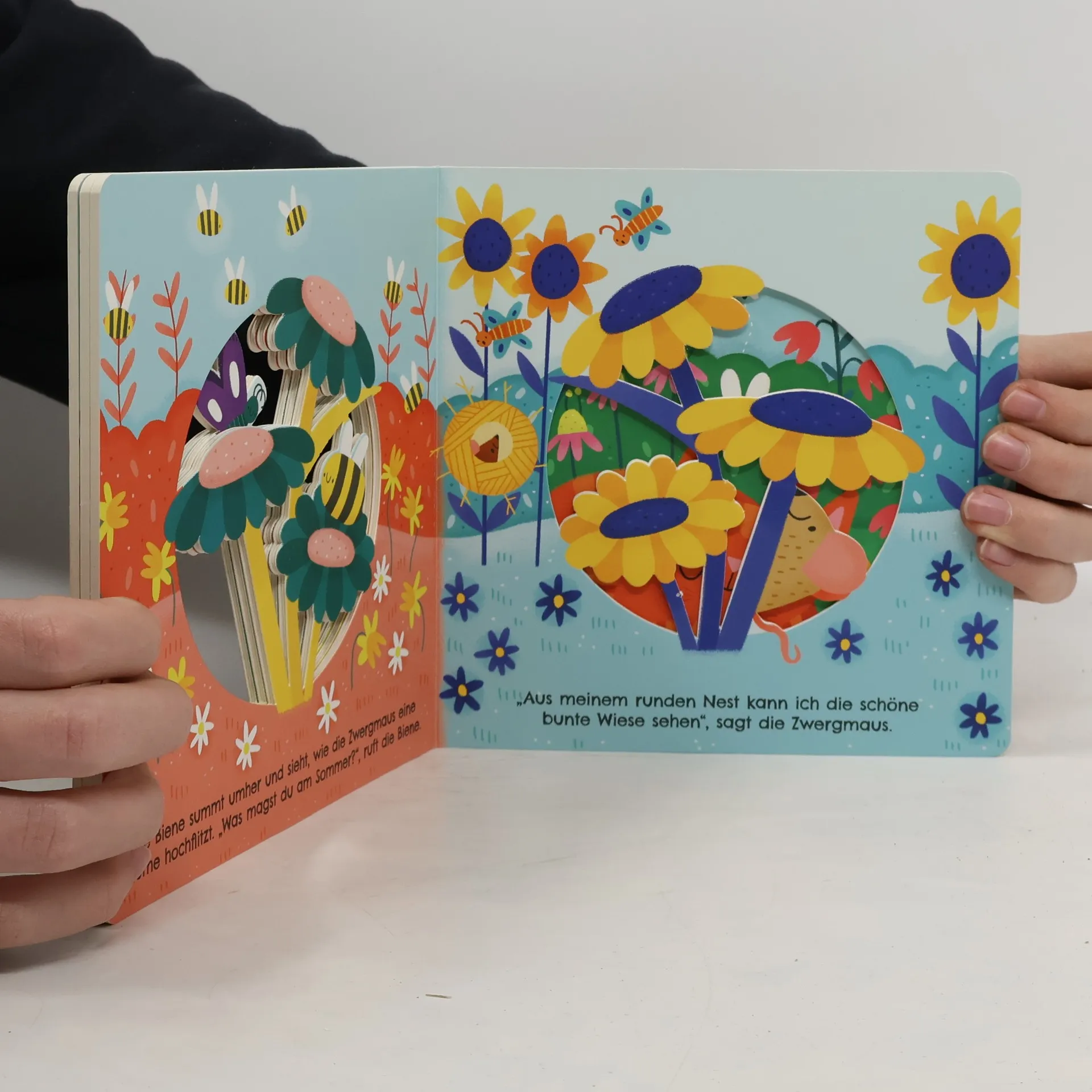 Im Sonnenlicht tummeln sich viele Tiere auf der bunten Wiese. Katze, Schmetterling, Biene und Zwergmaus erzählen, was sie an dieser Jahreszeit besonders mögen, und laden zu einem munteren Spaziergang im Garten ein.