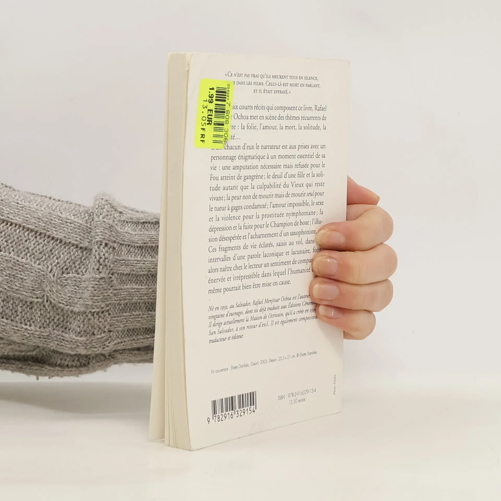 « Ce n'est pas vrai qu'ils meurent tous en silence, comme dans les films. Celui-là est mort en parlant, et il était effrayé. » Dans ces six courts récits, dont l'écriture s'étend de 1983 à 2007, Rafael Menjívar Ochoa met en scène des thèmes récurrents de son œuvre : la folie, l'amour, la mort, la solitude, la culpabilité... Dans chacun d'eux le narrateur est aux prises avec un personnage énigmatique à un moment essentiel de sa vie : une amputation nécessaire mais refusée pour le Fou atteint de gangrène ; le deuil d'une fille et la solitude autant que la culpabilité du Vieux qui reste vivant ; la peur non de mourir mais de mourir seul pour le tueur à gages condamné ; l'amour impossible, le sexe et la violence pour la prostituée nymphomane ; la dépression et la fuite pour le Champion de boxe ; l'illusion désespérée et l'acharnement d'un saxophoniste… Ces fragments de vie éclatés, saisis au vol, dans les intervalles d'une parole laconique et lacunaire, font alors naître chez le lecteur un sentiment de compassion énervée et irrépressible dans lequel l'humanité elle-même pourrait bien être mise en cause.