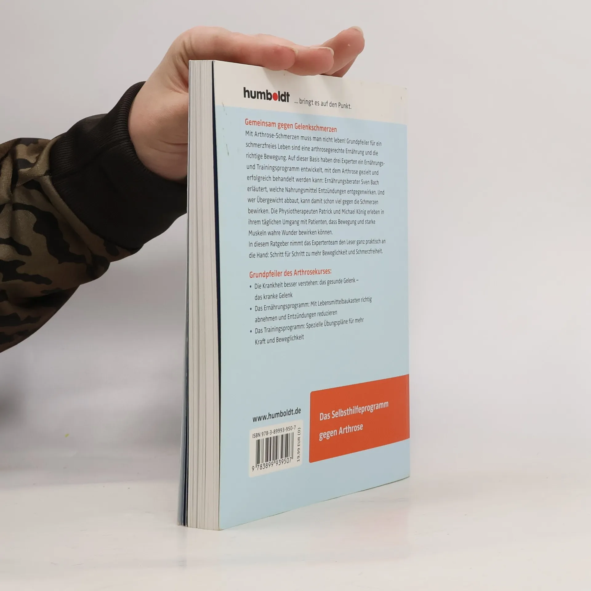 Starkes Team, starkes Konzept Mit Arthrose-Schmerzen muss man nicht leben! Grundpfeiler für ein schmerzfreies Leben sind eine arthrosegerechte Ernährung und die richtige Bewegung. Auf dieser Basis haben drei Experten ein Programm entwickelt, mit dem Arthrose gezielt und erfolgreich behandelt werden kann: Ernährungsberater Sven Bach erläutert, welche Nahrungsmittel Entzündungen entgegenwirken. Und wer Übergewicht abbaut, kann damit schon viel gegen die Schmerzen bewirken. Die Physiotherapeuten Patrick und Michael König erleben bei ihrem täglichen Umgang mit Patienten, dass Bewegung und starke Muskeln wahre Wunder bewirken können. In diesem Ratgeber nimmt das Expertenteam den Leser ganz praktisch an die Hand: Schritt für Schritt zu mehr Beweglichkeit und Schmerzfreiheit.