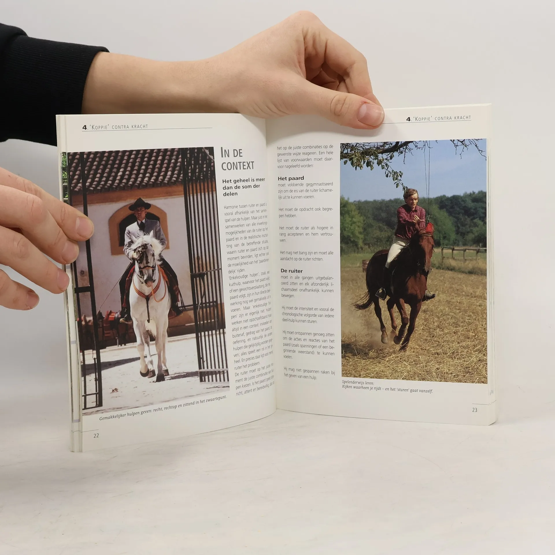 Informatie in woord en beeld over de verschillende manieren waarop ruiters duidelijk kunnen maken wat ze van een paard willen.