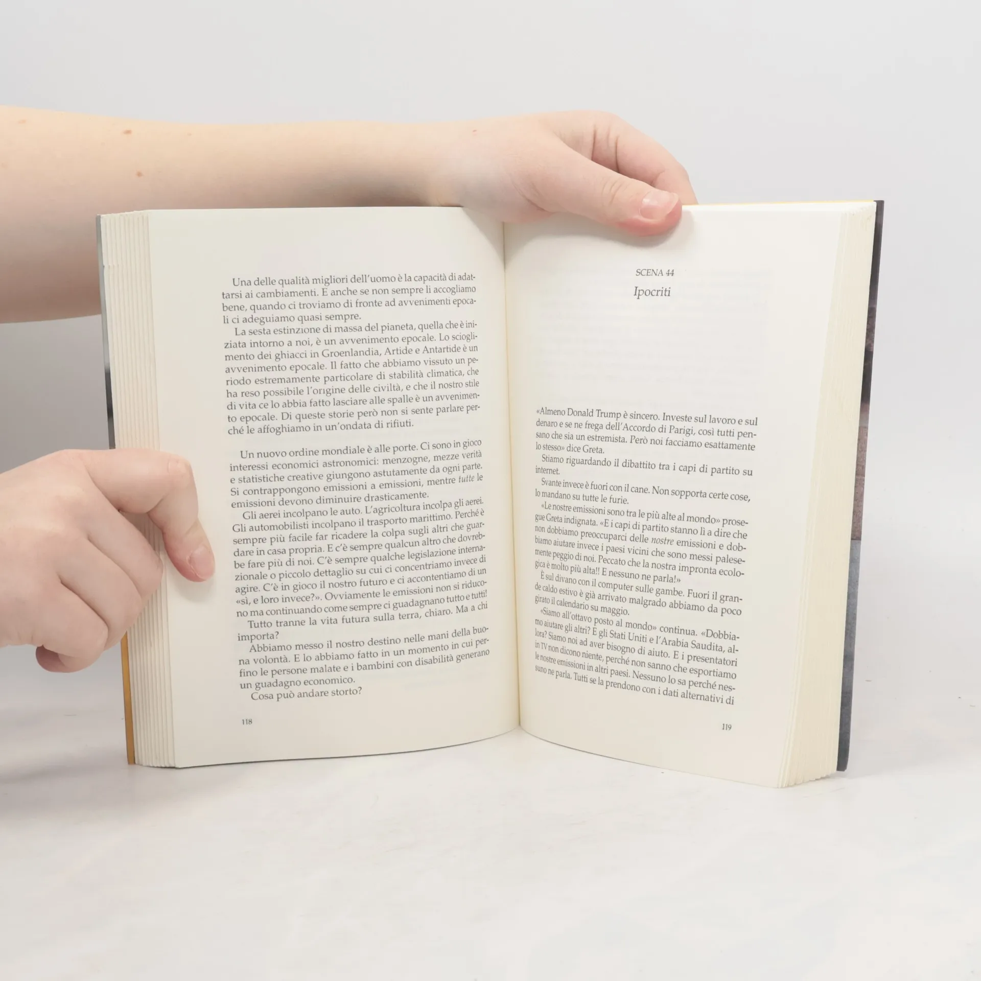 Mentre riporta alcuni brani dei discorsi che la ragazzina ha pronunciato in difesa del clima, il libro racconta la presa di coscienza dei suoi genitori e, insieme, delle difficoltà che hanno dovuto affrontare per il deficit della figlia, aprendo uno spaccato anche sulla situazione delle persone disabili in Svezia