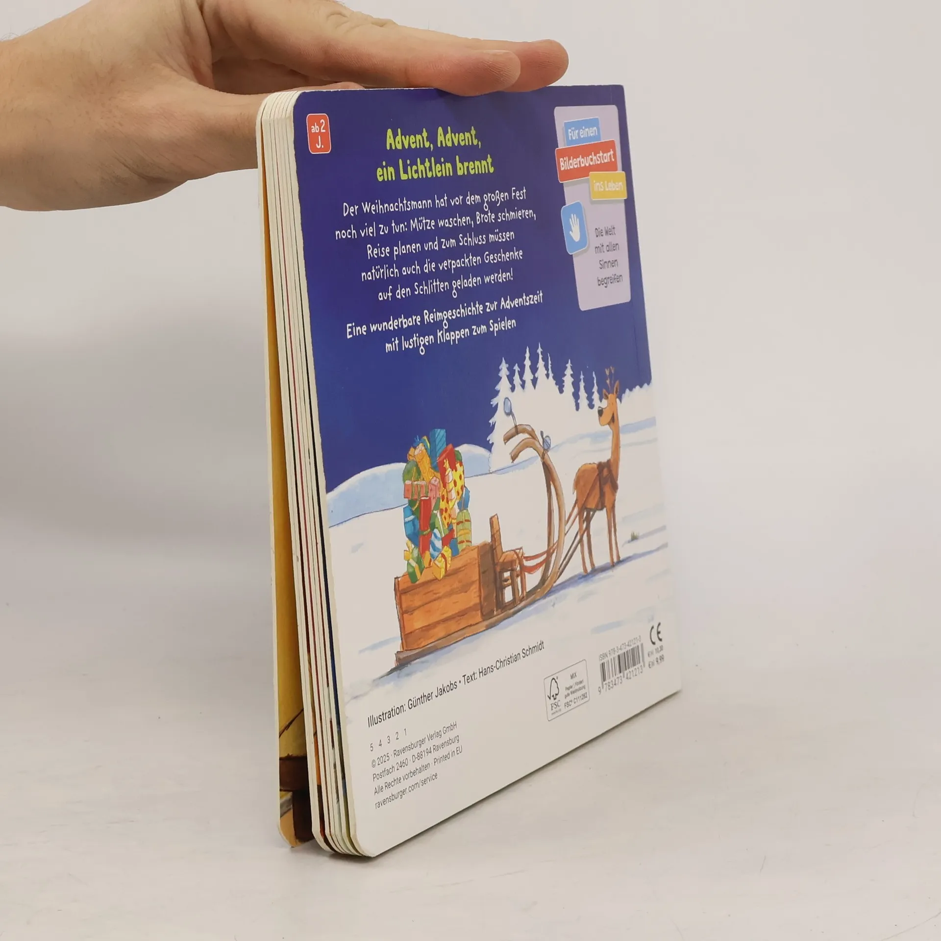 Schon bereit fürs Fest, lieber Weihnachtsmann? Bald ist Weihnachten. Und der Weihnachtsmann hat noch viel zu tun: seine Weihnachtsmütze waschen, die Reiseroute wählen, genug Proviant für die Schlittenfahrt vorbereiten und auch die Geschenke aufladen ... Gut, dass ihm das Rentier bei den Vorbereitungen hilft. Dieses lustige Pappbilderbuch hat große Klappen auf jeder Seite. Damit können die Kleinen überall bei den Weihnachtsvorbereitungen helfen. Das Spielen mit den Klappen fördert ganz nebenbei die Feinmotorik. Weihnachten steht vor der Tür. Der Weihnachtsmann ist aber noch nicht fertig mit seinen Vorbereitungen fürs große Fest. Es gibt sooo viel zu tun vor der Abreise! So muss der Weihnachtsmann erstmal seine Mütze waschen, die er für die Fahrt braucht. Dann wird die genaue Reiseroute auf dem Globus ausgesucht. Im Anschluss werden Pausenbrote geschmiert und zum Schluss die vielen, schön verpackten Geschenke auf den Schlitten geladen. Und dann kann es endlich losgehen: Frohe Weihnachten! Das Spielen mit den Klappen auf jeder Seite macht viel Spaß, verändert das Bild und fördert ganz nebenbei die Feinmotorik der Kleinen. Lustige Illustrationen und eine Reimgeschichte bringen Klein und Groß zum Schmunzeln.
