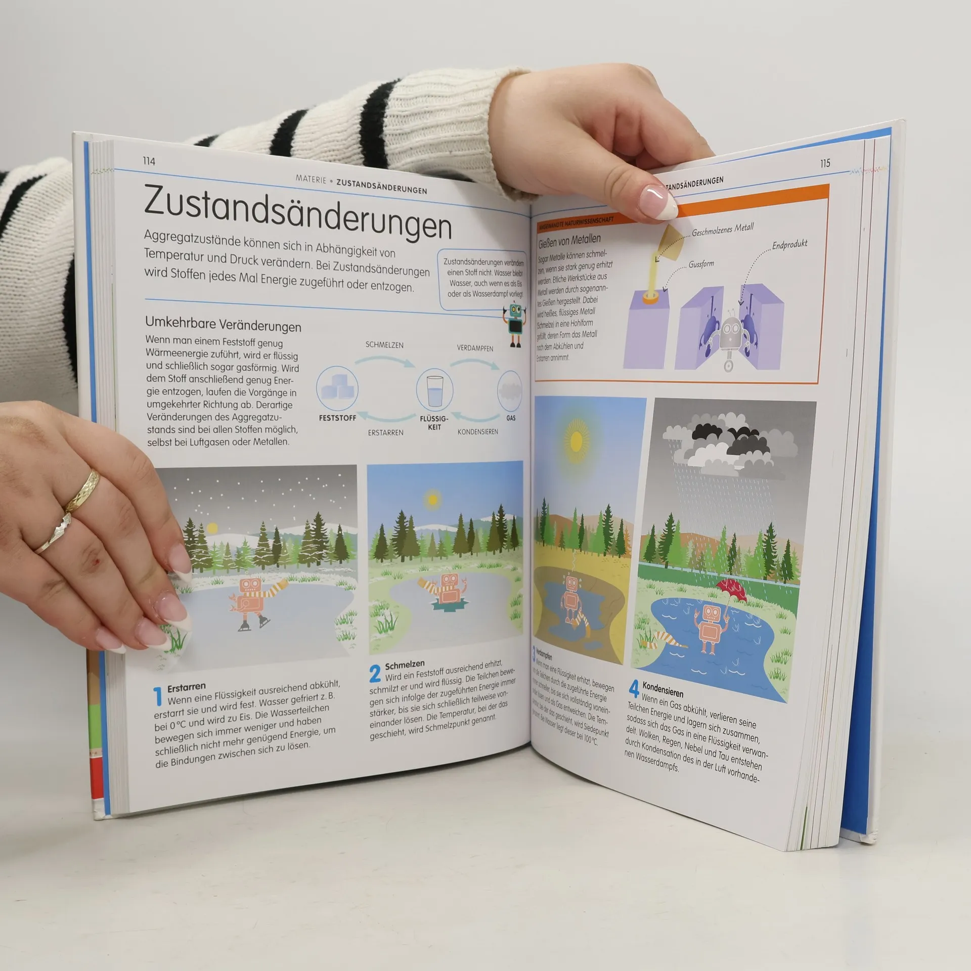 Naturwissenschaften verstehen – kein Problem! Erster Einstieg in die Welt der Biologie, Chemie, Physik, Natur und Technik: Hier gibt’s alle wichtigen Themen zum Nachschlagen. Die umfassende, fächerübergreifende Einführung macht Schulstoff verständlich. Grundlagen und Zusammenhänge werden mit vielen Abbildungen , praktischen Beispielen und Aufgaben anschaulich erklärt und selbstständiges Arbeiten wird gefördert. Naturwissenschaften anschaulich erklärt : Das Buch eignet sich optimal zur Vorbereitung oder Begleitung des Fachunterrichts in der Unterstufe. Fit für die weiterführende Schule! Das spannende Nachschlagewerk ist der ideale Einstieg in die naturwissenschaftlichen Schulfächer (MINT-Fächer)! In diesem Naturwissenschaften-Buch gibt es das geballte Wissen aus den fünf Sachgebieten Leben, Materie, Energie, Kräfte sowie Erde und Weltall – einfach dargestellt. Wie der Vorgänger „Mathe – kein Problem!“ bietet es einen komprimierten Auszug wesentlicher Inhalte des Sachunterrichts in der Grundschule und ergänzt dies schulform- und klassenstufenübergreifend um weiteres umfangreiches Grundlagenwissen. • Leicht zugängliches Wissen. • Witziger Robotercharakter als Begleitung. • Nützliche Beispiele und Ideen zum Ausprobieren. ✓ Ob als Einführung für Grundschüler, als Hausaufgabenhilfe für Unterstufen-Schüler oder Grundlagenverständnis für Eltern – diese Nachhilfe weckt bei jedem das Interesse für Naturwissenschaften und macht richtig viel Spaß!