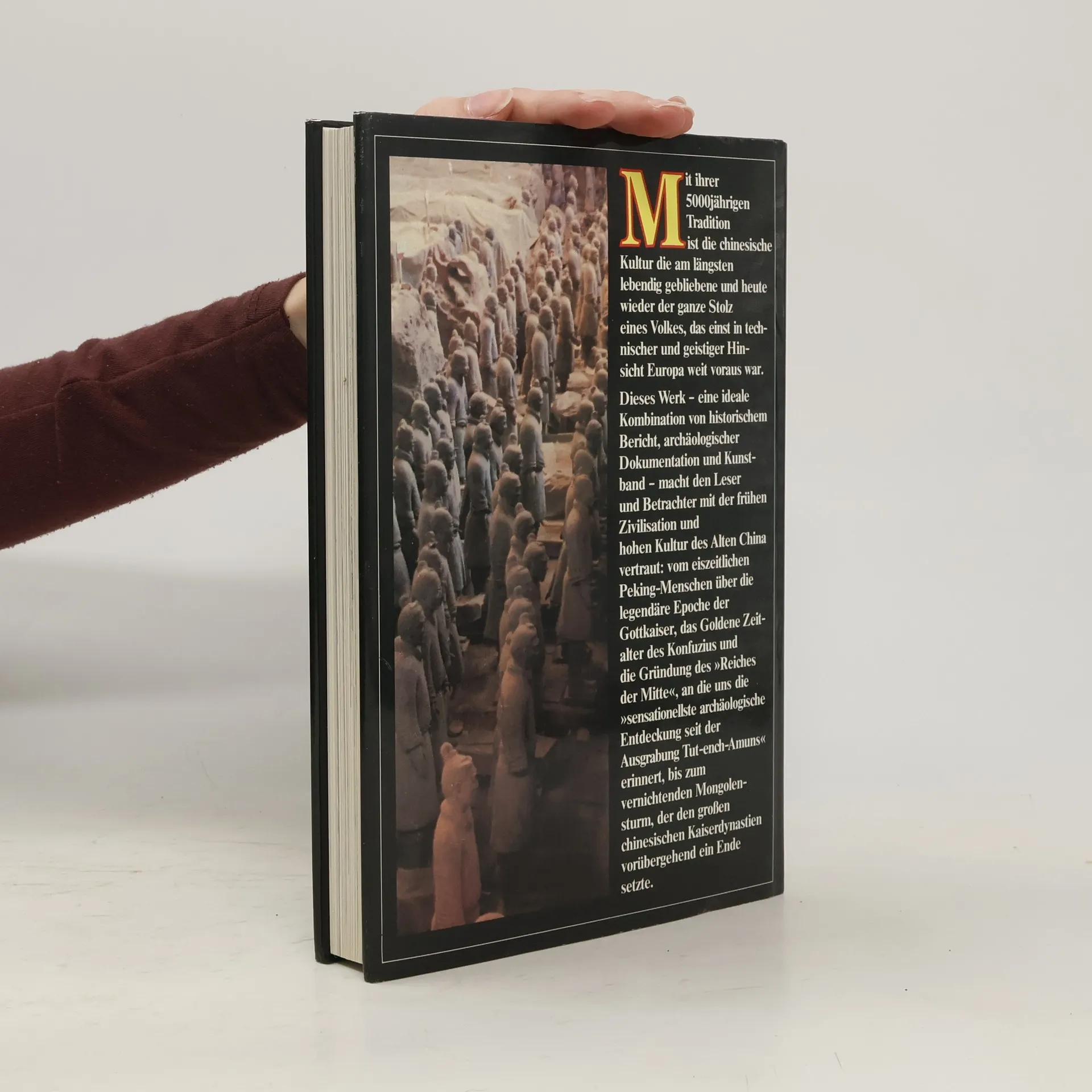 Vom eiszeitlichen Peking-Menschen über die mythenreiche Epoche der Gottkaiser, das Goldene Zeitalter des Konfuzius und die Gründung des "Reichs der Mitte" bis zu dem alles vernichtenden Mongolensturm, der den chinesischen Kaiserdynastien vorübergehend ein Ende setzte, spannt sich der Bogen dieses faszinierenden Buches, das historischer Bericht, archäologische Dokumentation und Kunstband in einem ist.Arthur Cotterell, einer der namhaftesten englischen Sinologen, und seine Frau Yong Yap, eine chinesische Historikerin, erzählen die Geschichte der 5000 Jahre alten chinesischen Kultur und zeigen gleichzeitig in einer Fülle einzigartiger Fotos erstmals auch die bisher unzugänglichen Schätze chinesischer Staatssammlungen. Als bedeutendstes Zeugnis dieser am längsten lebendig gebliebenen Kultur mag vielen die jüngst erfolgte Entdeckung jener riesigen Grabanlage erscheinen, die mehrere tausend aus Ton geformte Kriegerfiguren enthielt - die Armee des ersten Kaisers von China. Es war der sensationellste archäologische Fund seit der Ausgrabung Tut-ench-Amuns.