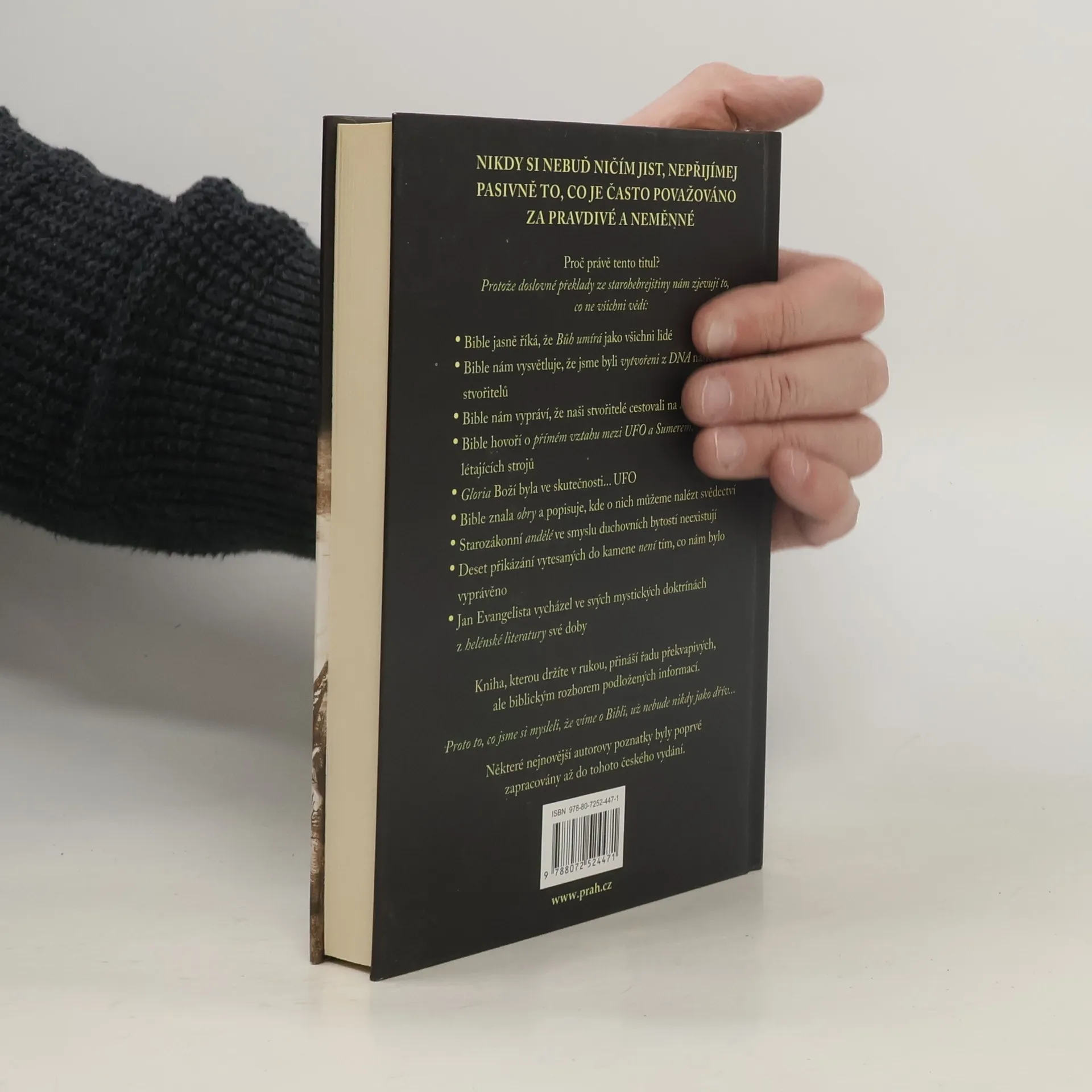 Důkazy jsou přímo v Bibli! Nejpřesvědčivější kniha na toto téma – bestseller v Itálii! Doslovné překlady ze starohebrejštiny nám zjevují to, co ne všichni vědí: Bible jasně říká, že Bůh umírá jako všichni lidé Bible nám vysvětluje, že jsme byli vytvořeni z DNA našich stvořitelů Bible nám vypráví, že naši stvořitelé cestovali na létajících strojích Bible hovoří o přímém vztahu mezi UFO a Sumerem, zemí hlídačů létajících strojů Gloria Boží byla ve skutečnosti... UFO Bible znala obry a popisuje, kde o nich můžeme nalézt svědectví Starozákonní andělé ve smyslu duchovních bytostí neexistují Deset přikázání vytesaných do kamene není tím, co nám bylo vyprávěno Jan Evangelista vycházel ve svých mystických doktrínách z helénské literatury své doby Proto to, co jsme si mysleli, že víme o Bibli, už nebude nikdy jako dřív...