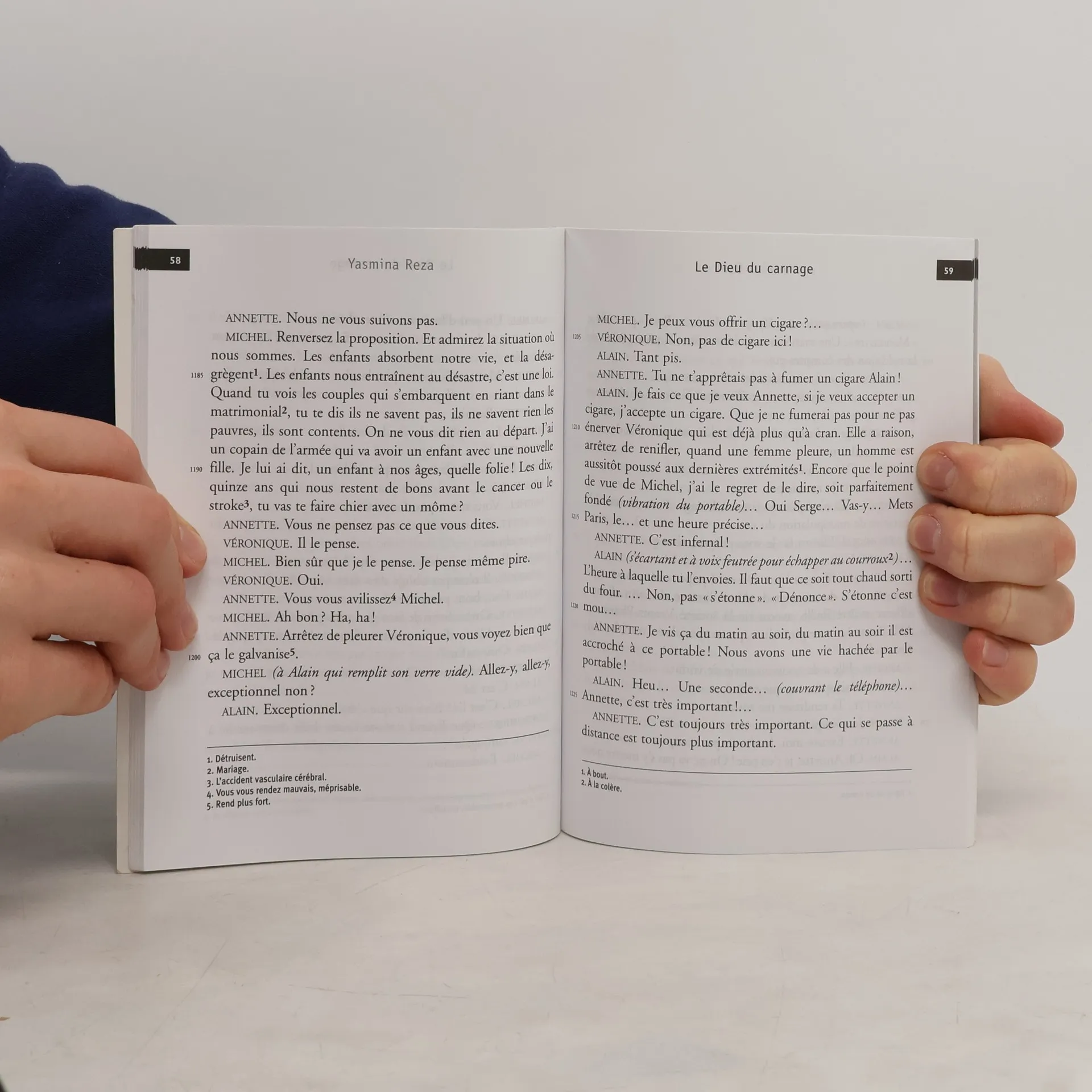 Deux couples, parents respectifs de deux collégiens, tentent de résoudre à l'amiable un conflit entre leurs enfants... Peu à peu, le vernis craque, et sous les apparences lisses, les passions se déchaînent et les deux couples finiront par s'entre-déchirer sous les hurlements de rire du public !
