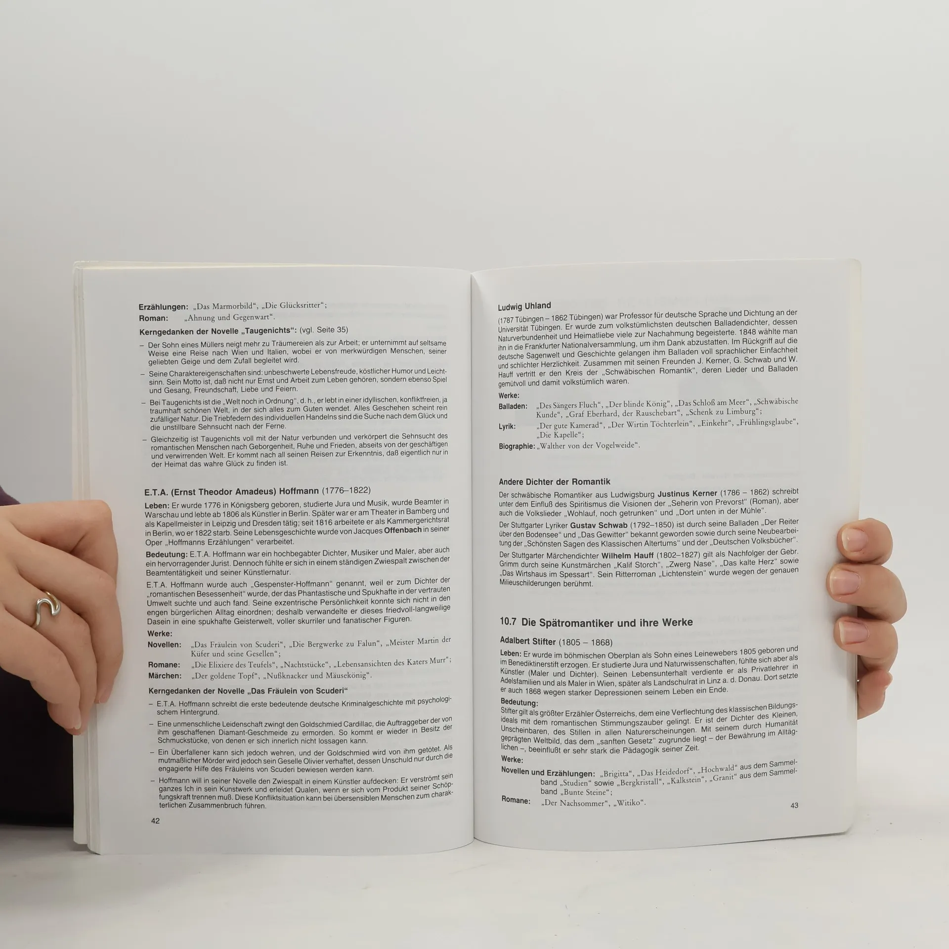 Dichtung der Germanen (0 - 800), Dichtung der Geistlichen (800 - 1200), Dichtung der Ritter (1200 - 1300), Dichtung der Bürger (1300 - 1500), Renaissance, Humanismus, Reformation (1500-1600), Barock (1600-1700), Aufklärung (1700 - 1770), Pietismus (1700 - 1770), Klassik (1770 - 1832), Romantik (1800 - 1848), Realismus (1848 - 1888), Naturalismus (1880 - 1900), Impressionismus (1880 - 1910), Neuromantik (1900 - 1914), Expressionismus (1910 - 1925), Dichtung der 1. Hälfte des 20. Jh.; Dichtung der 2. Hälfte des 20. Jh.; Anhang: Literarische Gattungen (Fachausdrücke)