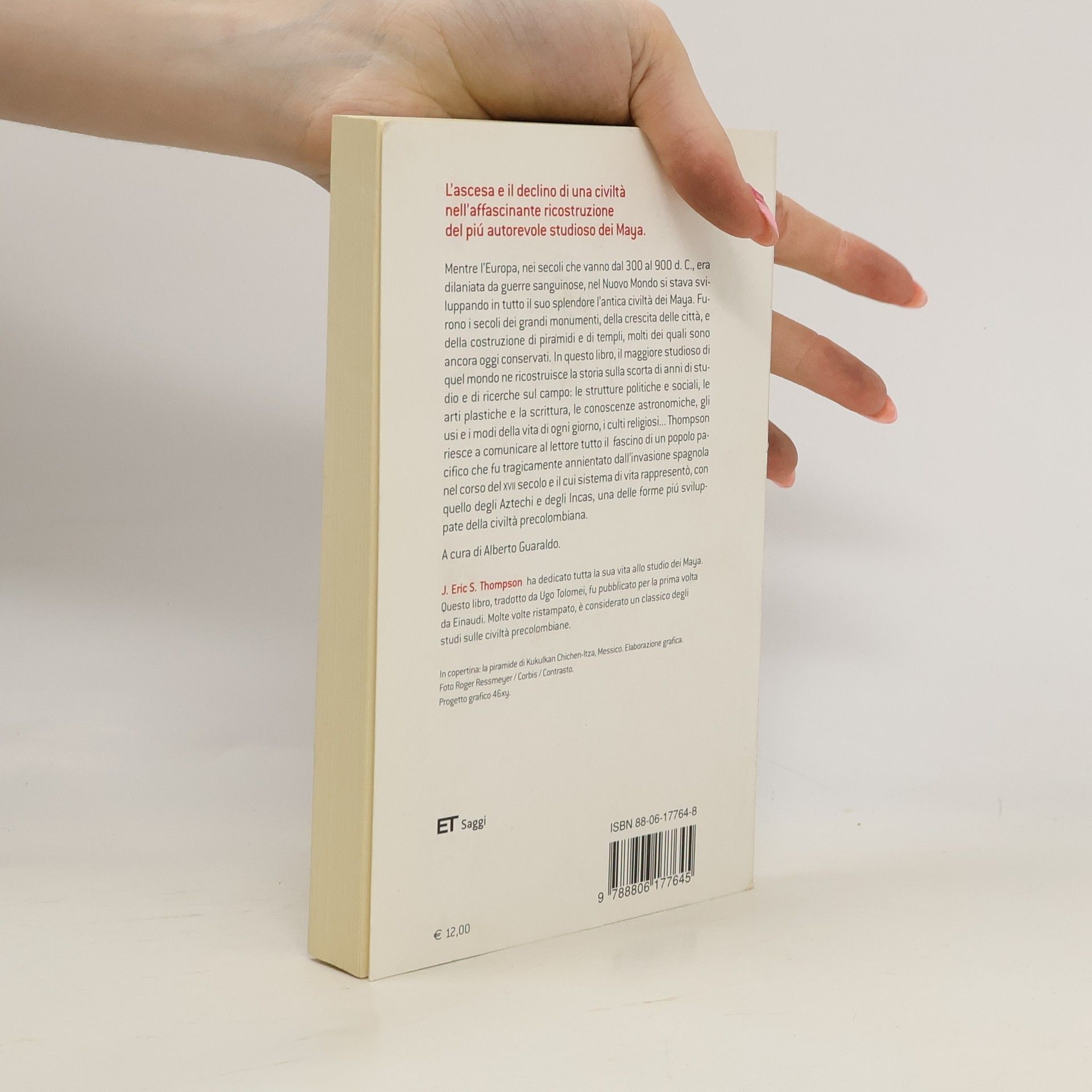 Mentre l'Europa, nei secoli che vanno dal 300 al 900 d.C., era dilaniata da guerre sanguinose, nel Nuovo Mondo si stava sviluppando in tutto il suo splendore l'antica civiltà dei Maya. Furono i secoli dei grandi monumenti, della crescita delle città, e della costruzione di piramidi e di templi, molti dei quali sono ancora oggi conservati. In questo libro, il maggiore studioso di quel mondo ne ricostruisce la storia sulla scorta di anni di studio e di ricerche sul campo: le strutture politiche e sociali, le arti plastiche e la scrittura, le conoscenze astronomiche, gli usi e i modi della vita di ogni giorno, i culti religiosi. Thompson riesce a comunicare al lettore tutto il fascino di un popolo pacifico che fu tragicamente annientato dall'invasione spagnola nel corso del XVII secolo e il cui sistema di vita rappresentò, con quello degli Aztechi e degli Incas, una delle forme più sviluppate della civiltà precolombiana.