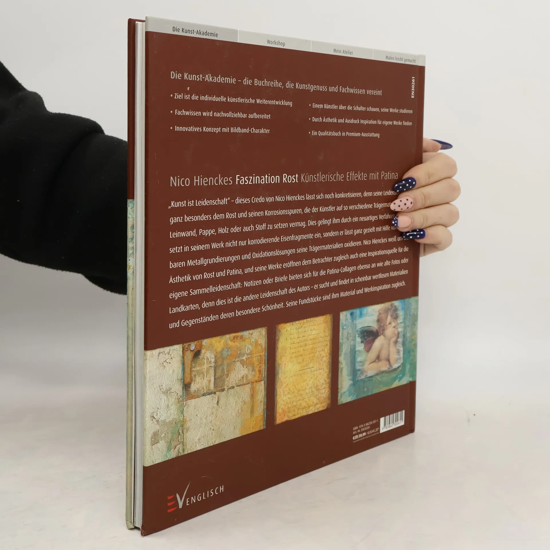 'Kunst ist Leidenschaft' - dieses Credo von Nico Hienckes lässt sich noch konkretisieren, denn seine Leidenschaft gilt ganz besonders dem Rost und seinen Korrosionsspuren, die der Künstler auf so verschiedene Trägermaterialien wie Leinwand, Pappe, Holz oder auch Stoff zu setzen vermag. Wie ihm dies gelingt? Durch ein neuartiges Verfahren, denn Hienckes setzt in seinem vielfältigen künstlerischen Werk nicht nur korrodierende Eisenfragmente ein, sondern er lässt ganz gezielt mit Hilfe von streichbaren Metallgrundierungen und Oxidationslösungen seine Trägermaterialien oxidieren. Das Ergebnis sind künstlerische Arbeiten, die sich fortwährend weiterentwickeln, und dies gleich im doppelten Sinn, denn Luftfeuchtigkeit und Temperatur nehmen Einfluss auf Ergebnis und Entwicklung des Oxidationsvorgangs. Nico Hienckes weiß um die ganz besondere Ästhetik von Rost und Patina, und seine Werke eröffnen dem Betrachter zugleich auch eine wahre Inspirationsquelle für die eigene Notenblätter oder Briefe bieten sich für die Patina-Collagen ebenso an wie alte Fotos oder Landkarten, denn dies ist die andere Leidenschaft des Nico Hienckes - er sucht und findet in scheinbar wertlosen, ausgedienten Materialien und Gegenständen deren besondere Schönheit und lässt diese Fundstücke neu definiert wieder aufleben. Auf diese Weise sensibilisiert er auch den Betrachter seiner Werke, denn seine Fundstücke sind ihm Material und Werkinspiration zugleich.