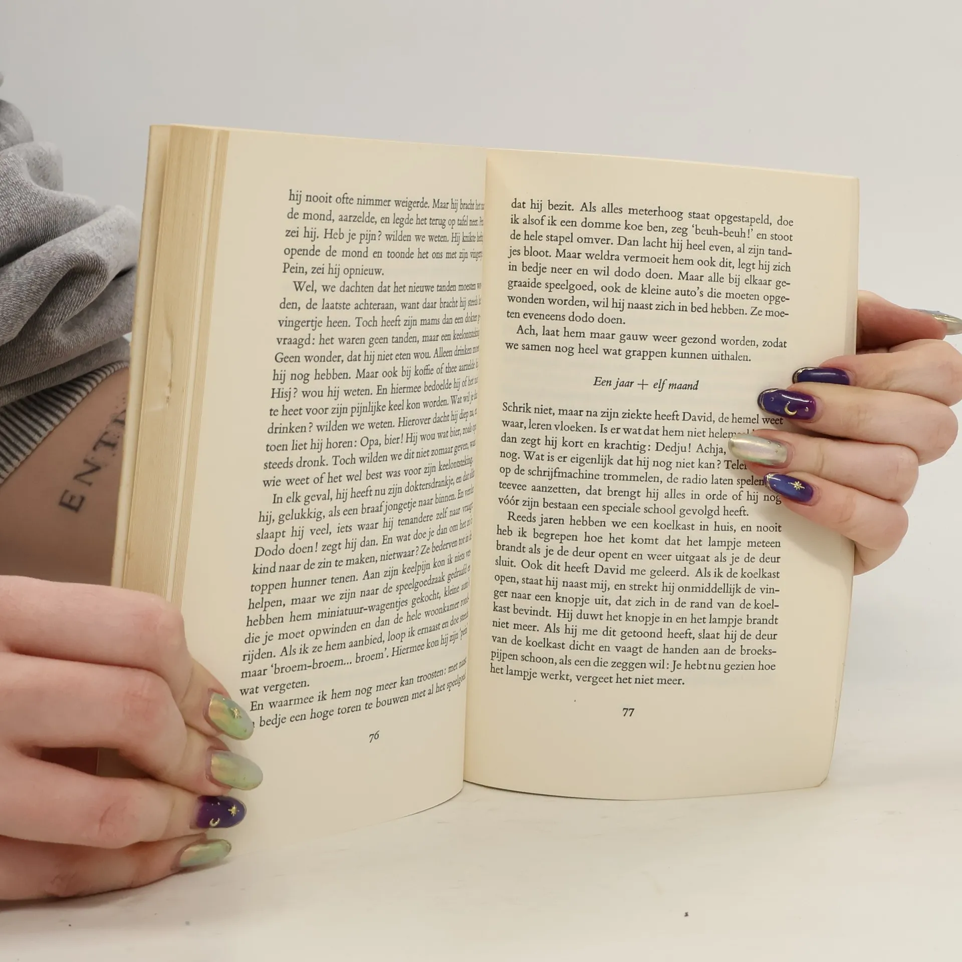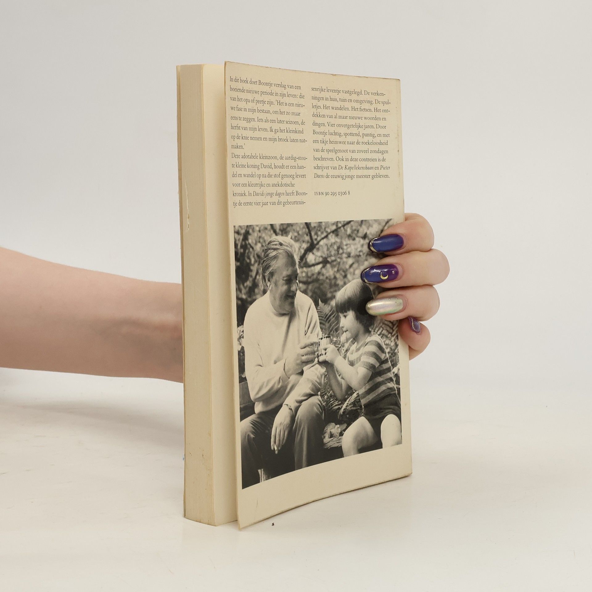 David is de kleinzoon van de schrijver, Louis Paul Boon, grootvader geworden, geeft in dit boek zijn ervaringen in zijn nieuwe hoedanigheid weer; de zenuwachtige tijd van voor de geboorte tot aan het bereiken van Davids vierde levensjaar. De verteltrant moet wel springerig zijn; alleen de belangrijkste -voornamelijk komische- gesprekken en gebeurtenissen komen aan de orde. Boon transponeert zichzelf in zijn kleinzoon, wat een bijzonder aardig effect oplevert. Vandaar dat we eigenlijk meer over de schrijver te weten komen, dan over de ontwikkeling van een kinderleven. Een kostelijk verhaal, dat ieder direct aanspreekt.