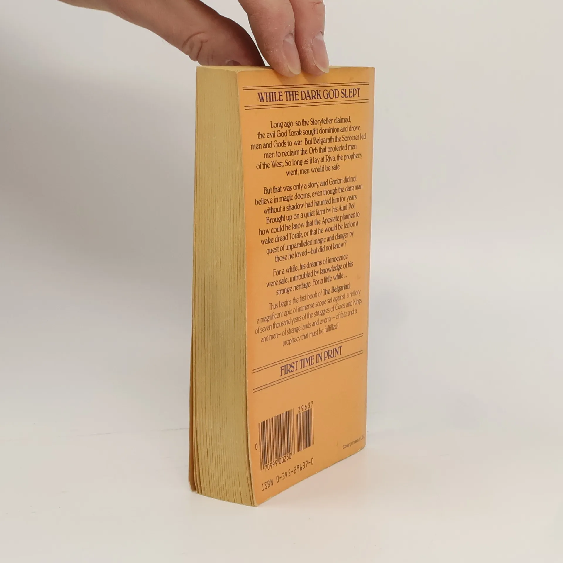 A magnificent epic set against a history of seven thousand years of the struggles of Gods and Kings and men - of strange lands and events - of fate and a prophecy that must be fulfilled! THE BELGARIAD<br /><br />Long ago, so the Storyteller claimed, the evil God Torak sought dominion and drove men and Gods to war. But Belgarath the Sorcerer led men to reclaim the Orb that protected men of the West. So long as it lay at Riva, the prophecy went, men would be safe.<br /><br />But that was only a story, and Garion did not believe in magic dooms, even though the dark man without a shadow had haunted him for years. Brought up on a quiet farm by his Aunt Pol, how could he know that the Apostate planned to wake dread Torak, or that he would be led on a quest of unparalleled magic and danger by those he loved - but did not know? For a while his dreams of innocence were safe, untroubled by knowledge of his strange heritage. For a little while... THUS BEGINS BOOK ONE OF THE BELGARIAD'