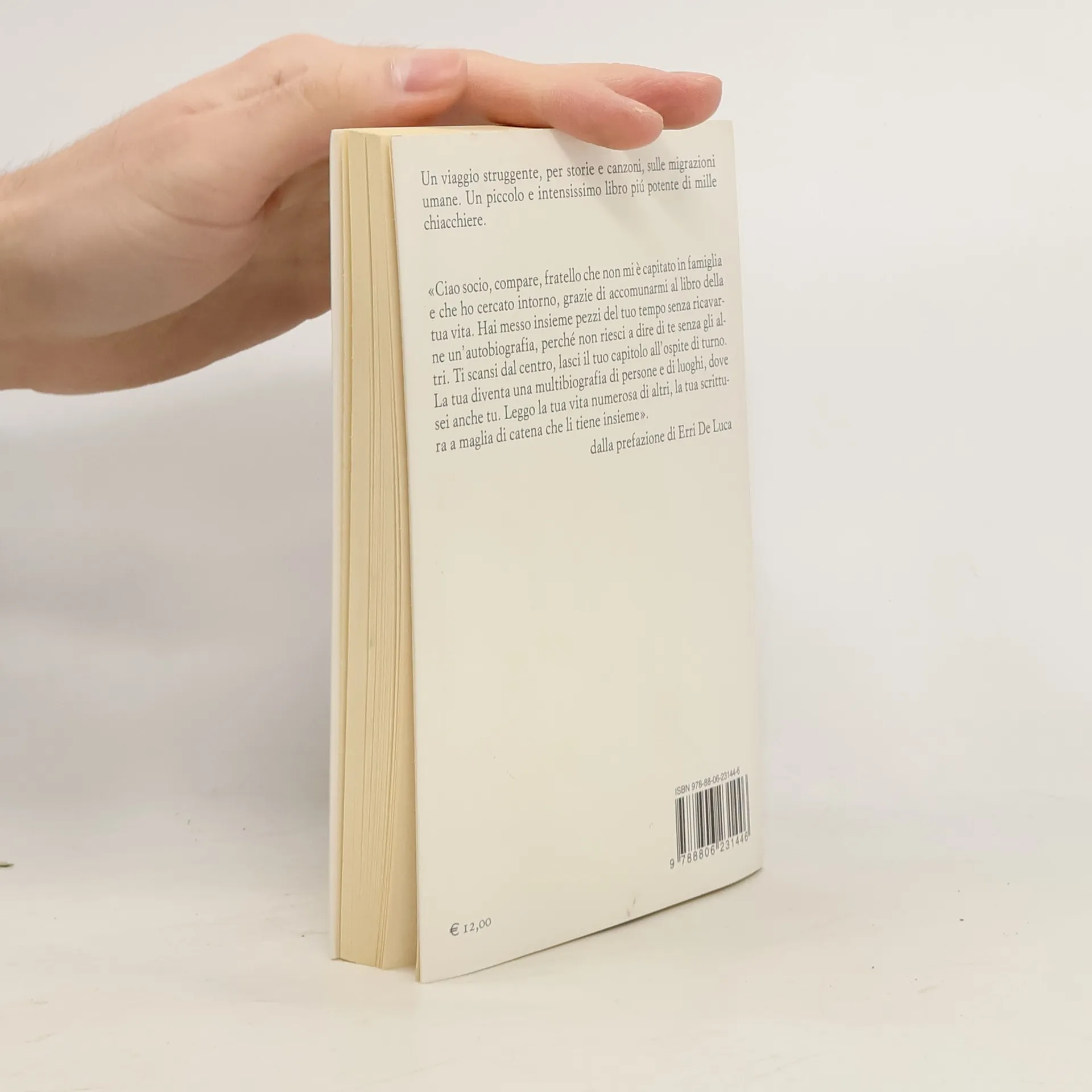 Babasunde, che ha perso il suo nome. E quella ragazza intirizzita che cammina verso la stazione. Rrock Jakaj, violinista di Scutari. Jean-Claude Izzo, commosso dall'ascolto di una canzone di Murolo. E poi Tinochika detto Tino, che si è aggrappato con tutto se stesso allo sguardo di una donna. Gianmaria Testa ritorna - questa volta non nelle vesti di cantautore ma di scrittore - sul tema delle migrazioni contemporanee. E lo fa senza retorica e con il solo sguardo sensato: raccontando storie di uomini con una lingua poetica e tagliente, insieme burbera ed emozionata. A dieci anni dall'uscita del disco Da questa parte del mare, che ha ricevuto la Targa Tenco nel 2007 come migliore album dell'anno, quelle canzoni così vive e attuali generano qualcosa di nuovo: un altro tipo di scrittura e di voce. «Ho l'impressione che nei confronti del fenomeno delle migrazioni abbiamo avuto uno sguardo povero e impaurito che ha fatto emergere la parte meno nobile di noi tutti, - scrive. - Bisogna avere occhi, cervello e coraggio da spendere».