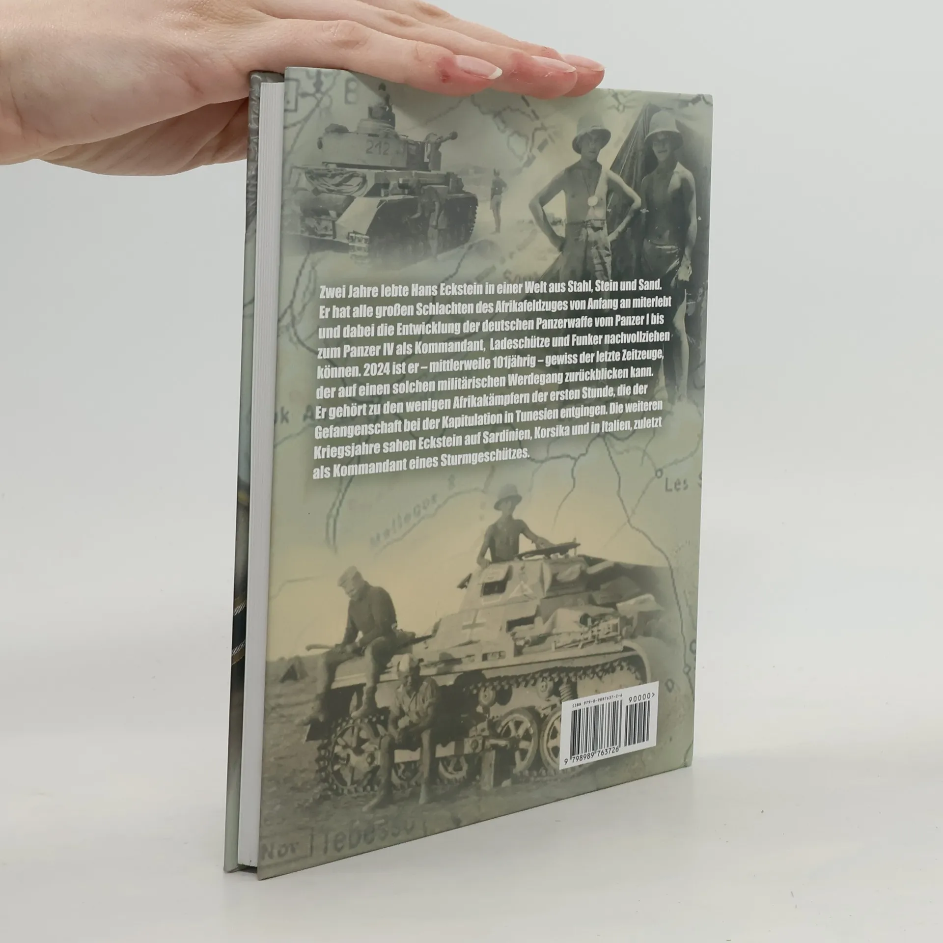 Zwei Jahre lebte Hans Eckstein in einer Welt aus Stahl, Stein und Sand. Er hat alle großen Schlachten des Afrikafeldzuges von Anfang an miterlebt und dabei die Entwicklung der deutschen Panzerwaffe vom Panzer I bis zum Panzer IV als Kommandant, Ladeschütze und Funker nachvollziehen können. 2024 ist er – mittlerweile 101jährig – gewiss der letzte Zeitzeuge, der auf einen solchen militärischen Werdegang zurückblicken kann. Er gehört zu den wenigen Afrikakämpfern der ersten Stunde, die der Gefangenschaft bei der Kapitulation in Tunesien entgingen. Die weiteren Kriegsjahre sahen Eckstein in Sardinien, Korsika und Italien, zuletzt als Kommandant eines Sturmgeschützes.