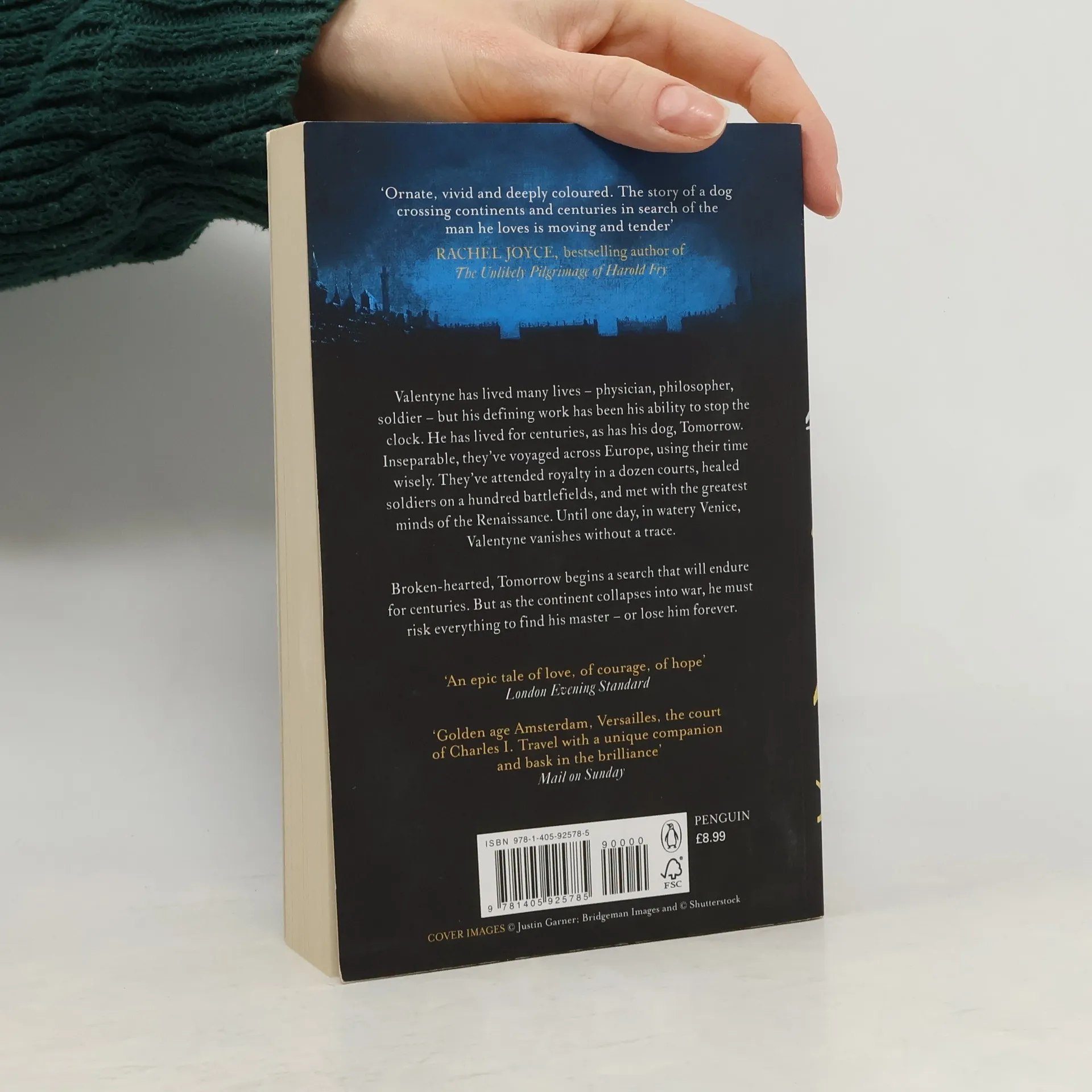 Valentyne has lived many lives - physician, philosopher, soldier - but his defining work has been his ability to stop the clock. He has lived for centuries, as has his dog, Tomorrow. Inseparable, they've voyaged across Europe, using their time wisely. They've attended royalty in a dozen courts, healed soldiers on a hundred battlefields, and met with the greatest minds of the Renaissance. Until one day, in watery Venice, Valentyne vanishes without a trace. Broken-hearted, Tomorrow begins a search that will endure for centuries. But as the continent collapses into war, he must risk everything to find his master - or lose him forever.